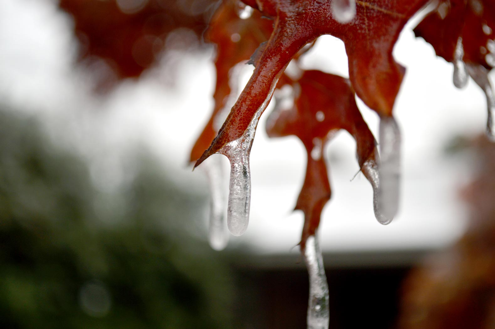 Went to visit a friend before the weather got crazy. Her Japanese Maple turned this vibrant red in this cold weather. And with the rain beginning to freeze on it's leaves they really began to shine.