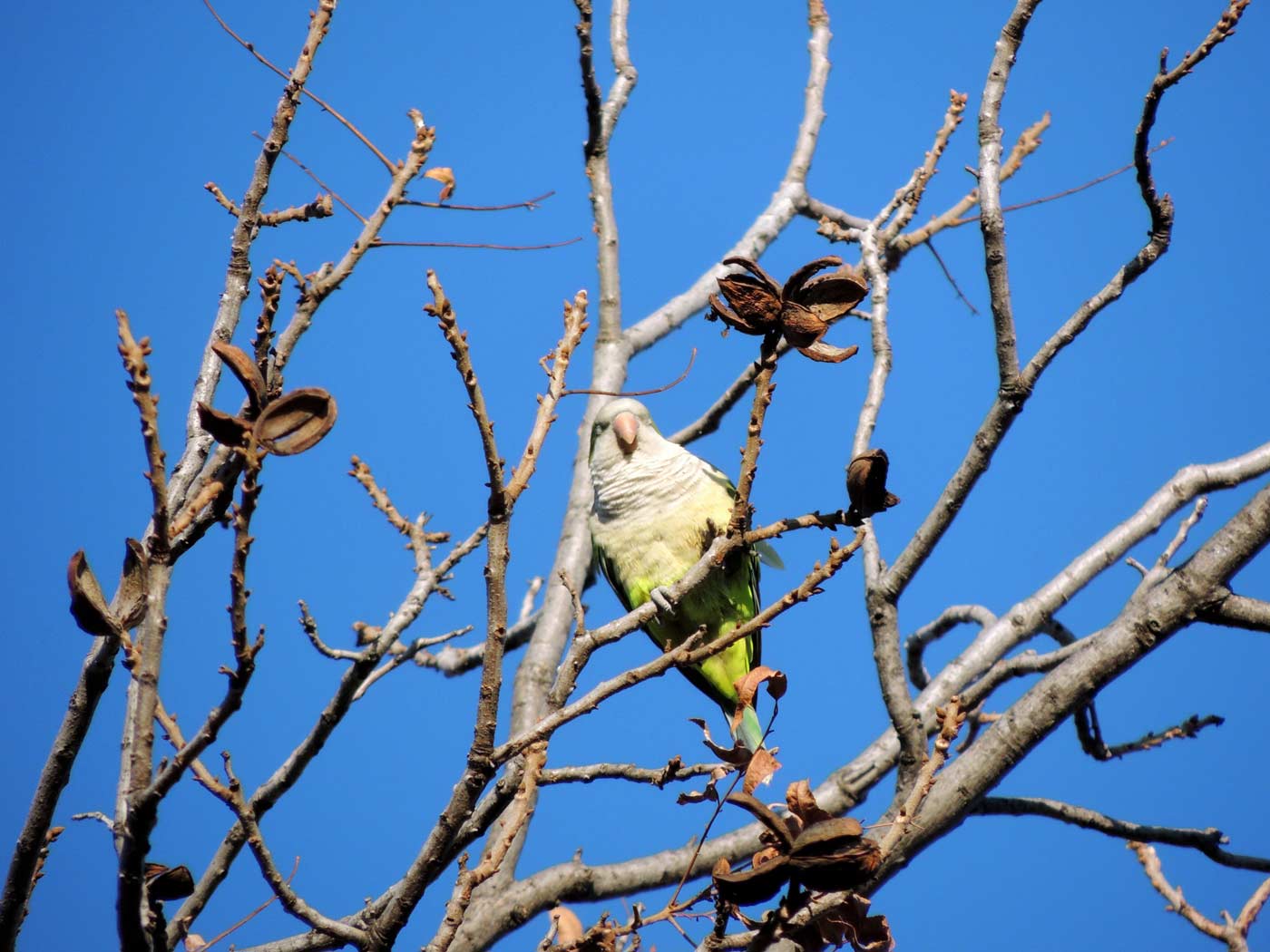 I was out walking Grace early this morning and I heard some weird noise in the neighbor's tree. I looked and saw that there were at least a dozen small, green parrots in the tree. This is going to throw off the ecosystem of North Texas for sure. What's next, capuchin monkeys?