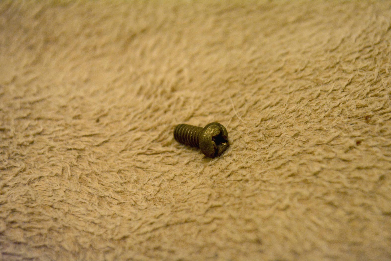 I think my poor Grace had a loose screw that has fallen out. She was lying in her bed and a minute later I walked by and this was in the middle of her bed. I wonder how many more loose screws she has. I don't know whether to take her to the vet or a mechanic.