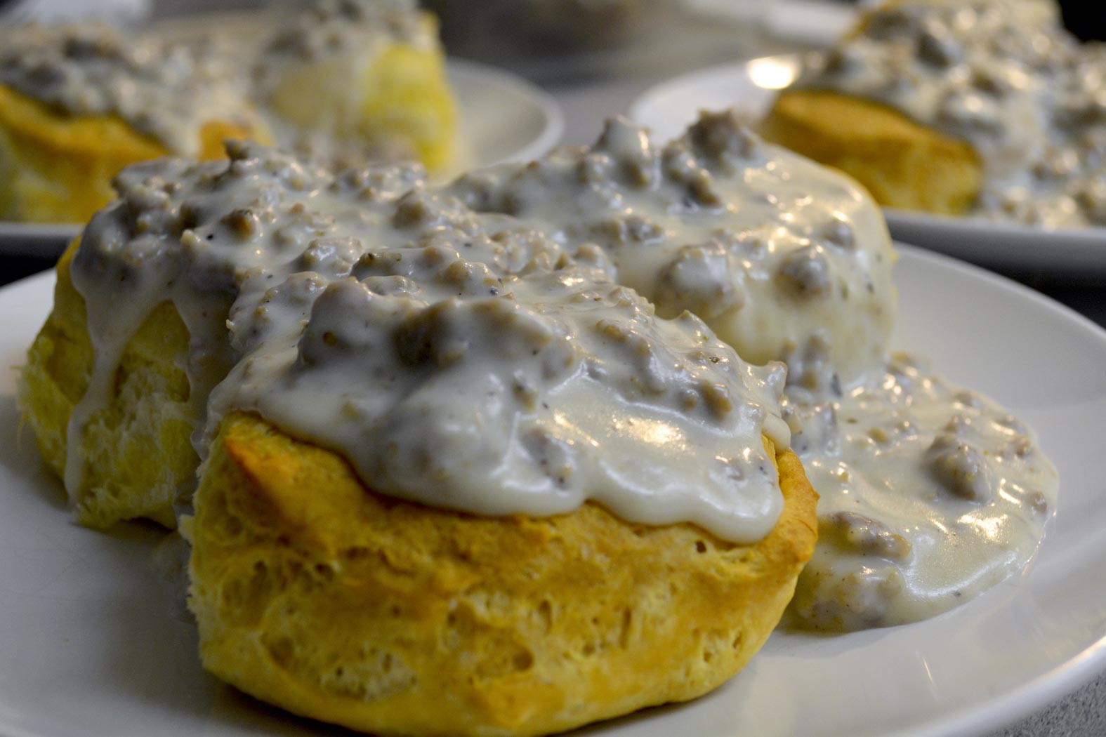 We have a guest from Canada staying with us for the Holidays. I picked up stuff to make biscuits and gravy. She didn't know what biscuits were. "Like English Muffins?" Uh, no. "Is gravy like brown sauce?' Uh, no again. But she says it all with a French accent. She's so pretty.
