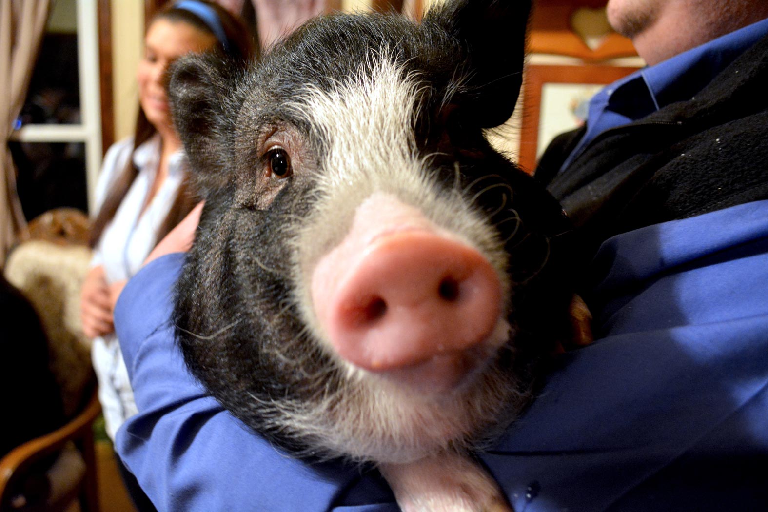 This is Paisley, my niece's pet pig. You never know what's gonna happen at our Christmas get together. I wonder what Grace would think of her. I love spending time with my whole family. Spending time with all of them at Christmas is just that much more special.