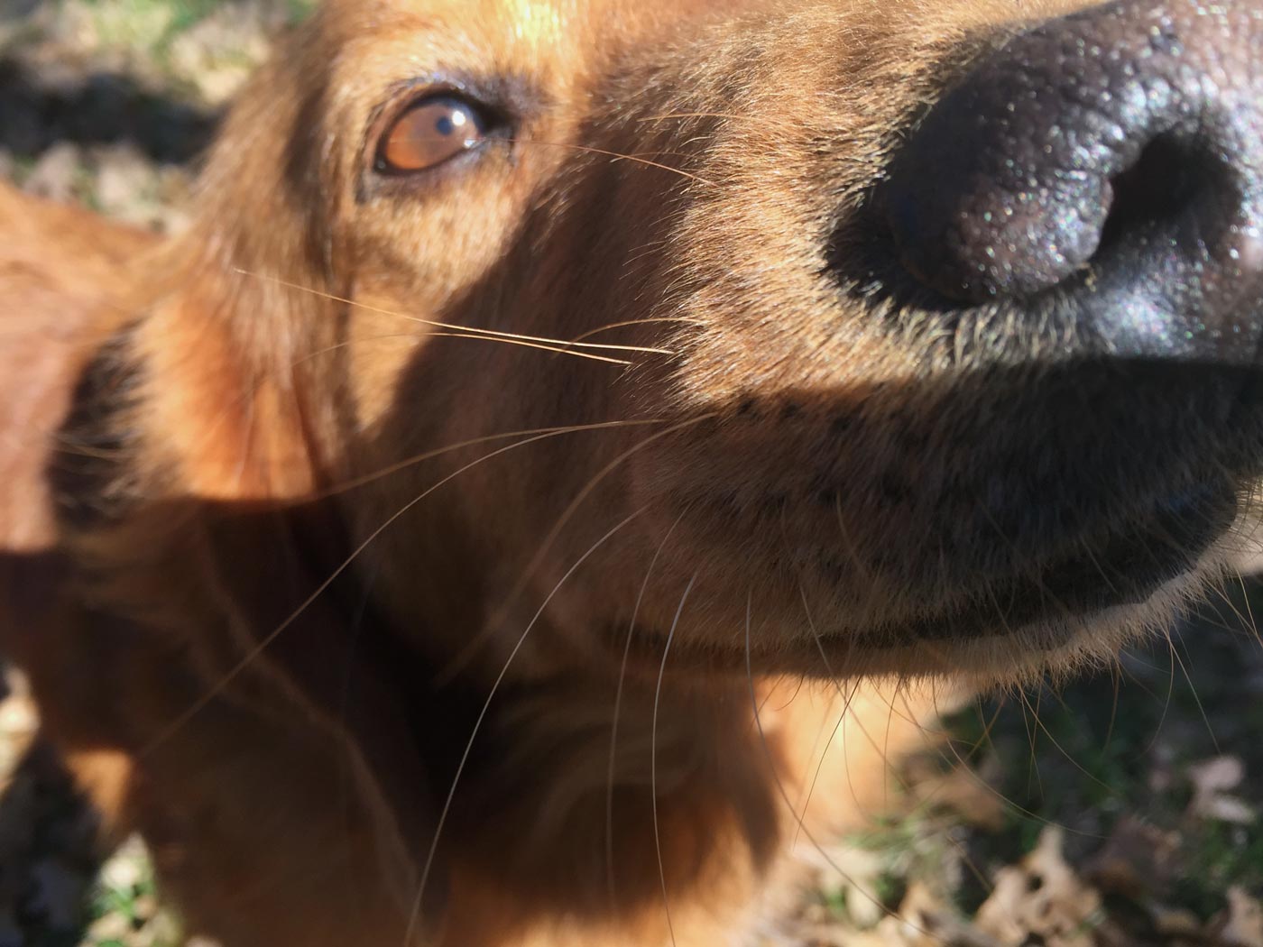 I went out to my parent's house to go pick up Grace. She is usually so calm, but she was so excited to see me and practically dragged me to the car. Barkley came up to say good bye and I got this close up of him.
