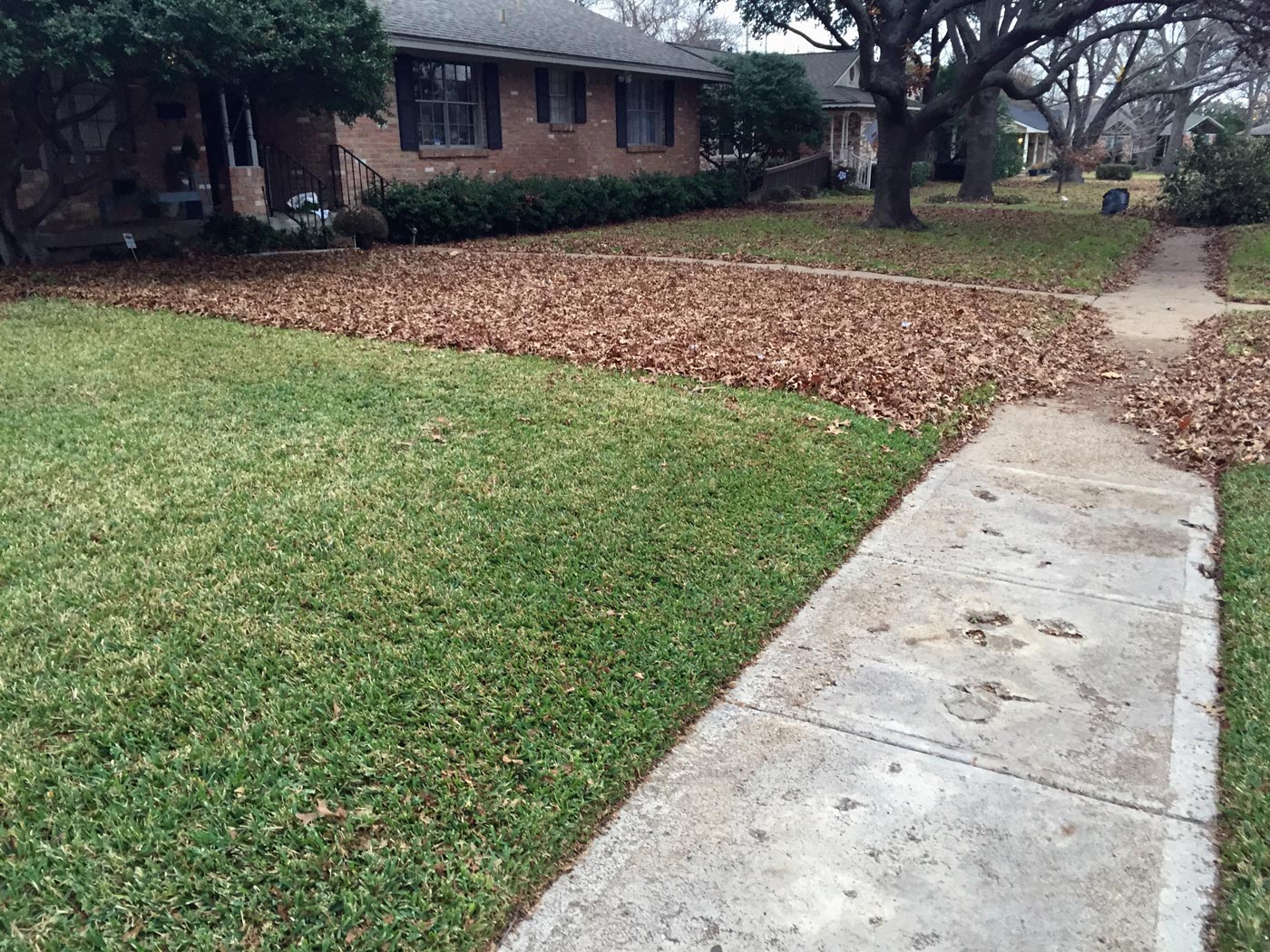 I took Grace for a walk this morning and noticed this down the street. I guess the yard guys finished this yard just a few minutes ago because the wind is blowing this way and this distinct line is still there. I should take a picture when I get home.