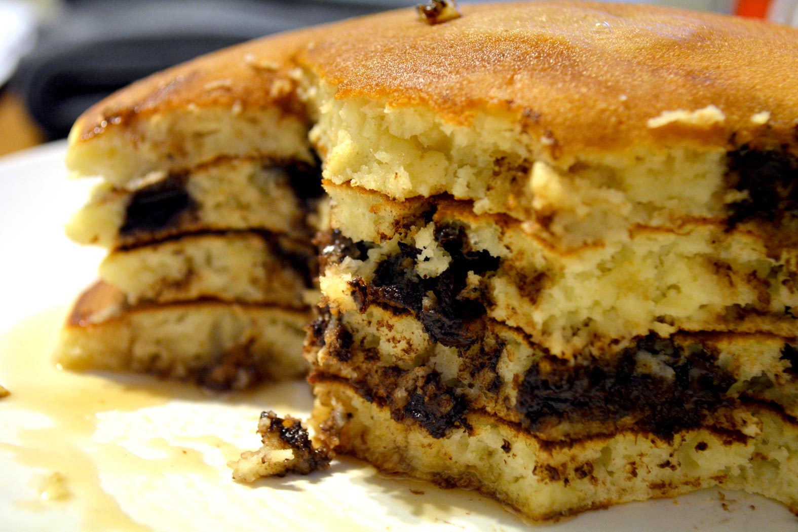 I had one banana left from the bread pudding I made last week. I used it and some dark chocolate bits to make some pancakes. I've had banana pancakes and I've had chocolate chip pancakes, but I've never had them all in one. One more reason I'll never be thin. hahaha
