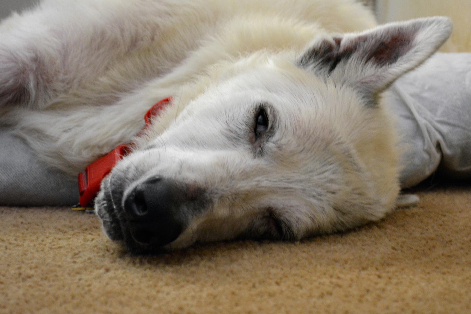 I took an afternoon nap today on the couch. When I got up I went to my room and found someone else was taking a nap too. She usually doesn't like to lay on her bed if the cover isn't on it. I put it to wash before my nap. I guess she's just working through that.