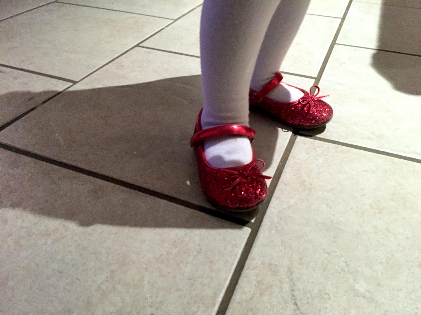 I went to a friend's house for Halloween. They know how to do the holiday RIGHT! This little girl walked in to the house dressed as Dorothy. She reminded me of Riley. She was Dorothy around this same age. She wore those shoes until all the glitter wore off and to her every dog was a Toto.