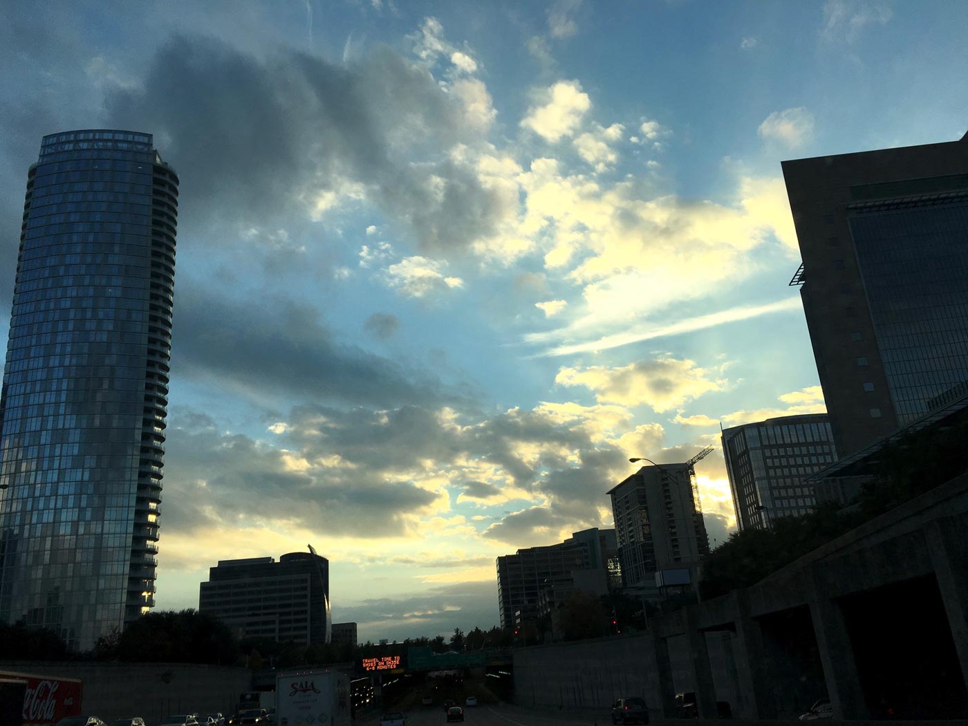 I went to meet a friend for dinner after work. Just as I was getting on the highway the sunset looked beautiful, but I was doing 75 during rush hour on 635 so I thought it wasn't a good time to try to get a photo. This was little while later, still 635, but at a complete stop.