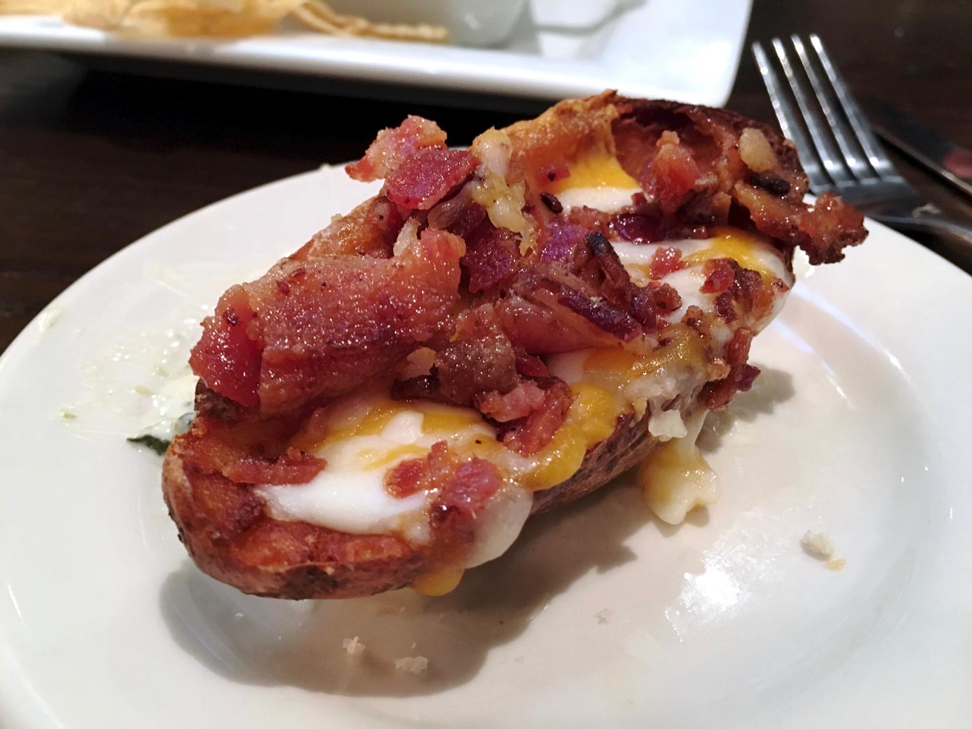 I met my good friend, his wife and daughter, my god daughter for a late lunch. You'd think knowing him well enough to be the Godfather to his daughters this one being 23 years old, I'd know already that neither of them like bacon. I know.... I was shocked too. We ordered potato skins I got all the extra bacon.