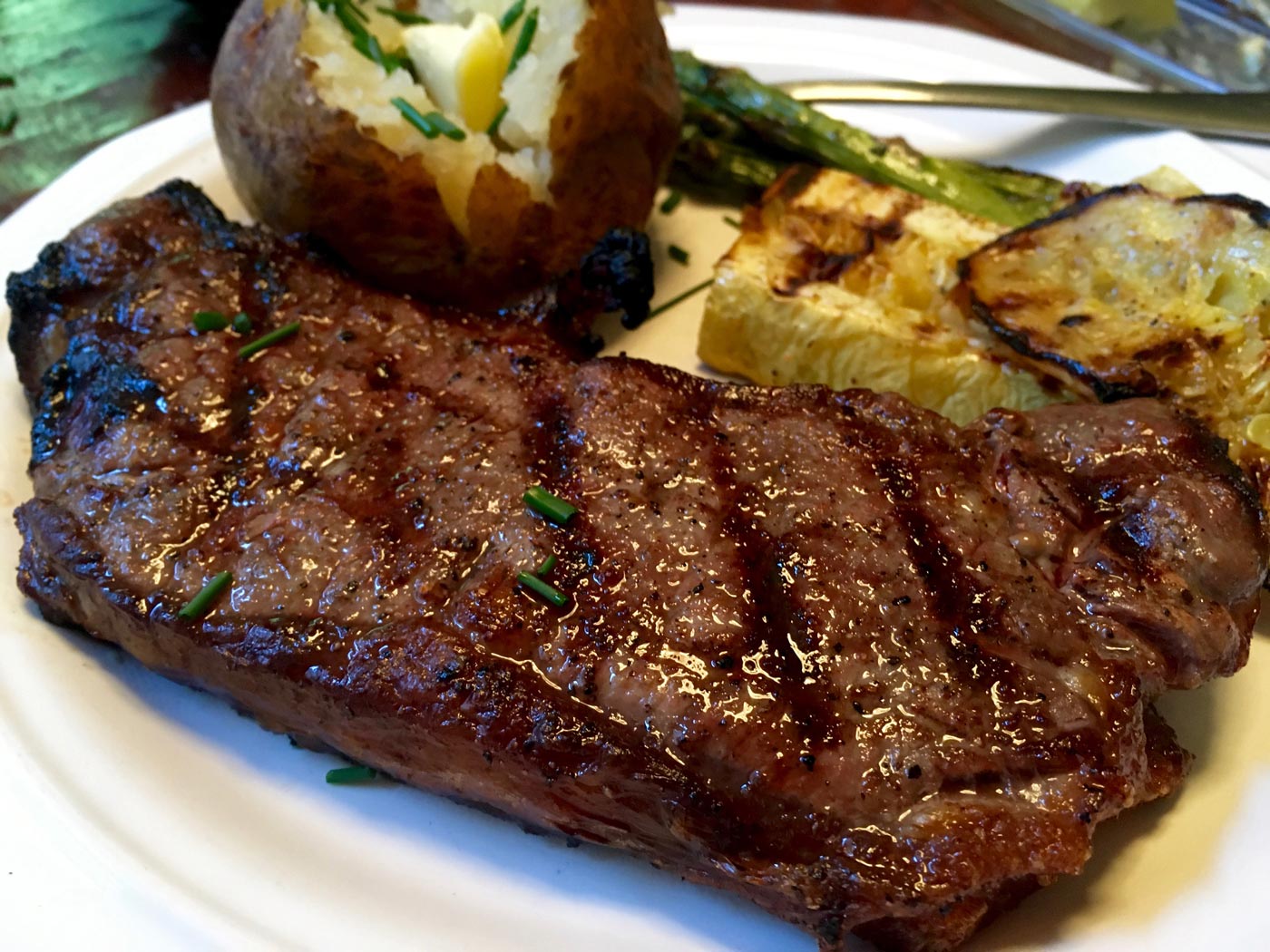 June 5, 2016 - Sunday - The birthday celebrations have begun. I had some Linda's Fudge Cake yesterday and today a friend and I fired up the grill. We did lots of veggies, baked potatoes, salmon for her and a deliciously grilled steak for me.