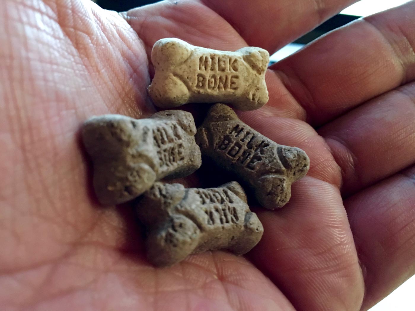 June 6, 2016 - Monday - A long while back a friend gave me a box of these. Her dog didn't like them. These are the perfect sized snacks for Pancake and Biscuit. They're the size of kibble to Grace. She looks at me funny when I give her one at a time.