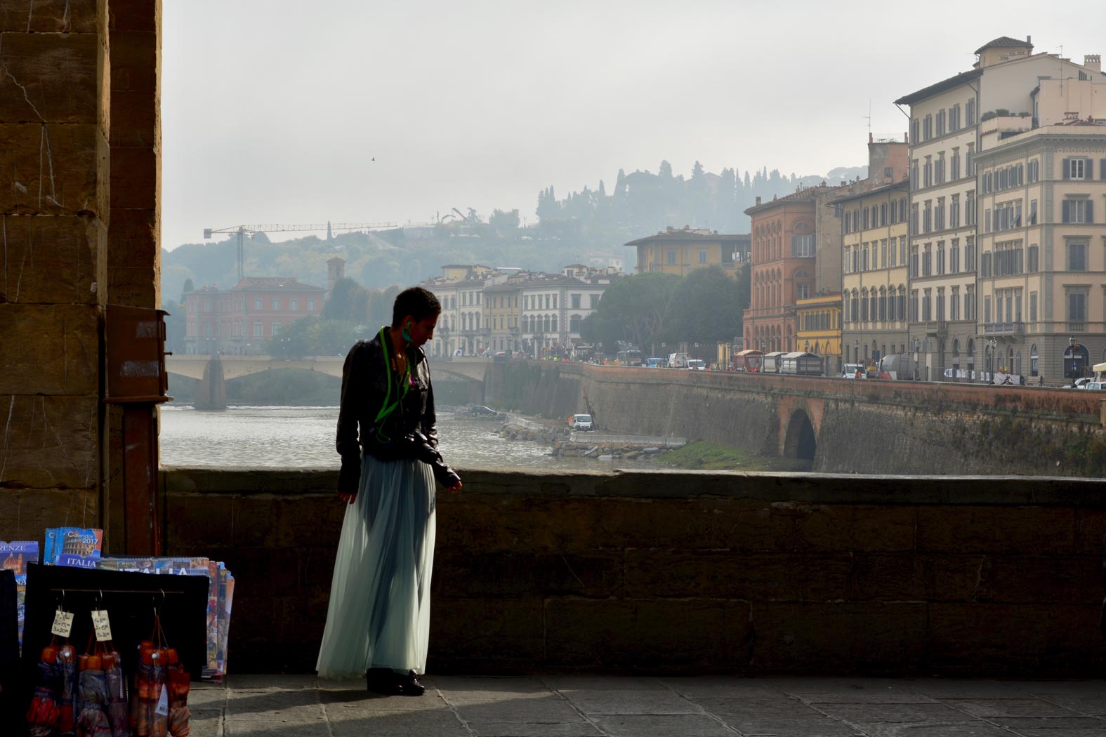 November 3, 2016 - Thursday - Today was a long day with a record number of steps and another early start. We may have had more fun than we should have last night and neither of us were at our best but that didn't matter too much. Out day trip to Florence was still beautiful even though it was a bit overcast. I took this from the other side of the bridge before Riley caught me.