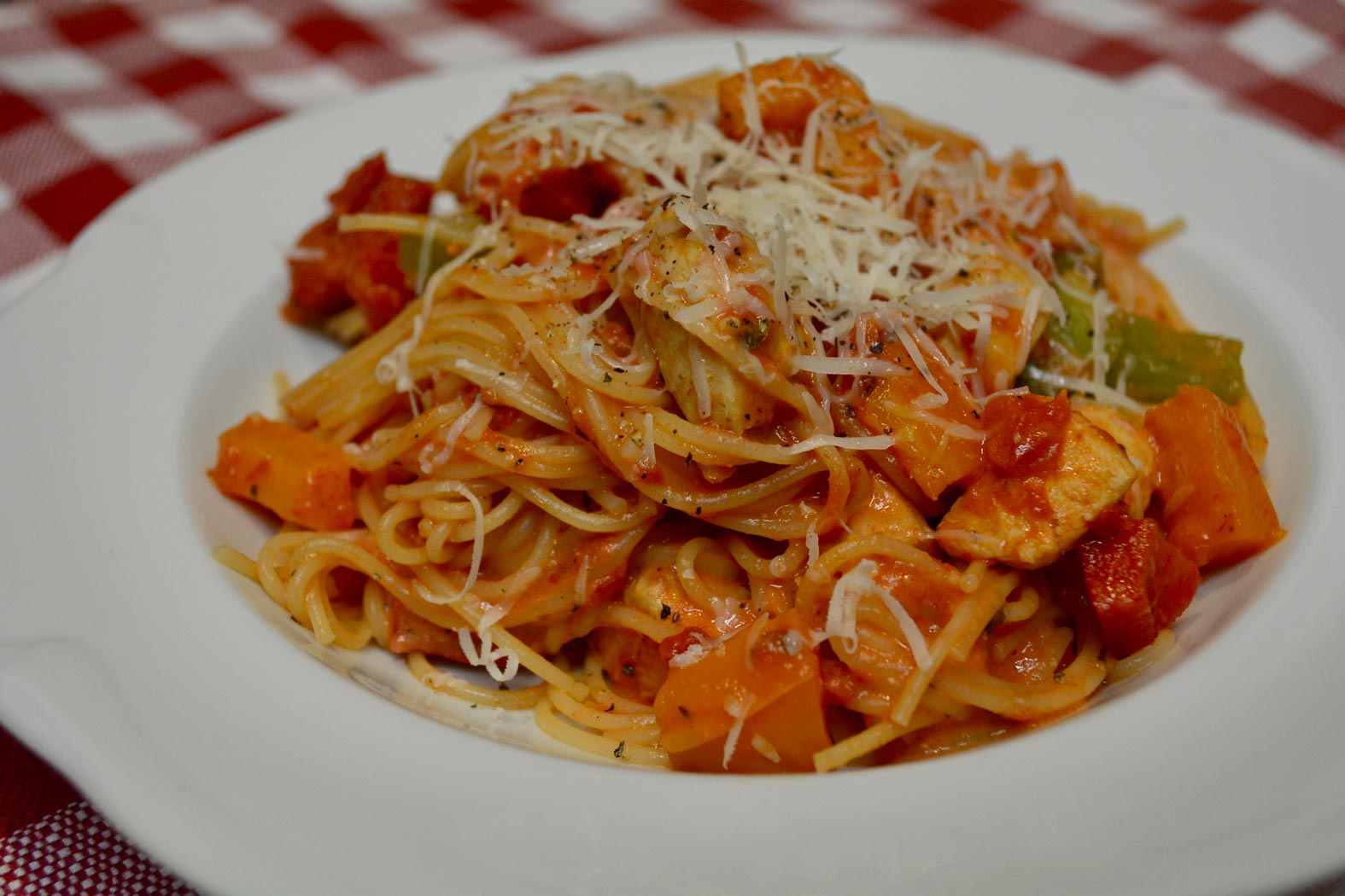 November 6, 2016 - Sunday - The guys at the restaurant outside our hotel gave me a parting gift, one of their table cloths. Riley got invited into the kitchen. The kitchen, in an Italian restaurant, in Italy!!! I was a little jealous. They also let her behind the bar to make me a Jack and honey. I made a dinner worthy of the new table cloth.