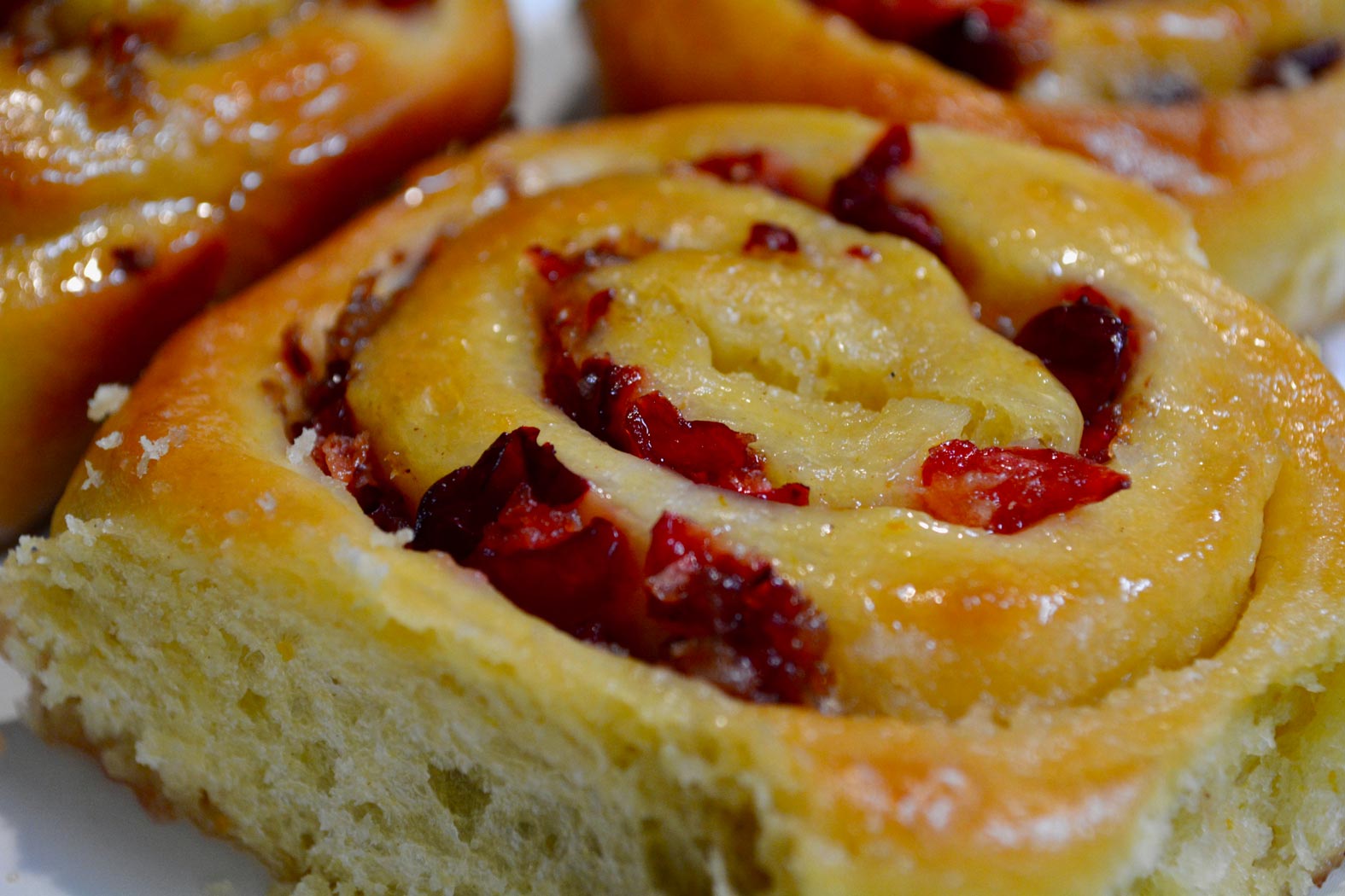 November 19, 2016 - Saturday - A friend had a pre-holiday get together at her place. A mutual friend brought these, cranberry-orange rolls. They were so delicious. She made some sort of glaze for them too. Fortunately there were a couple left over and my skinny friend insisted that I not leave them at her place. Win-Win.