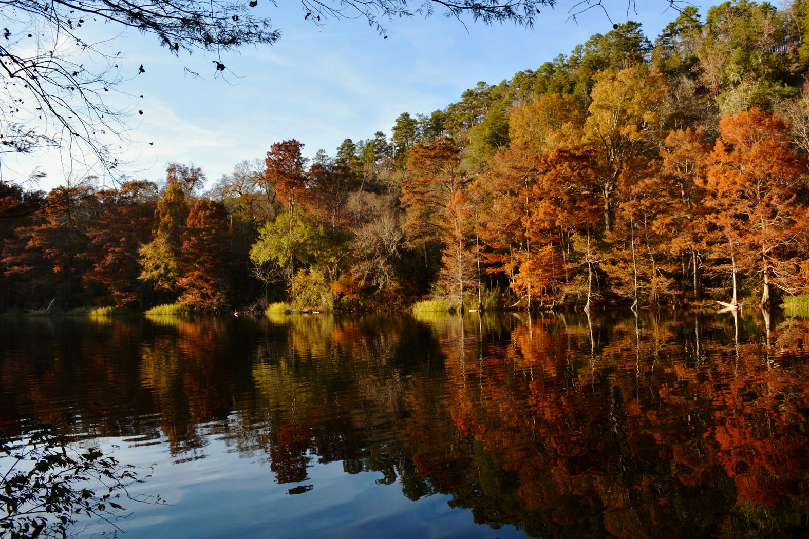 November 25, 2016 - Friday - I decided to try camping for the weekend. I bought a tent and stuff after Christmas last year and hadn't used it yet. I took the dogs with me to Beavers Bend State Park. It was a beautiful day and I set up camp near the river. It was so nice to just sit and relax there. I took this just before the sun went behind a hill behind me.