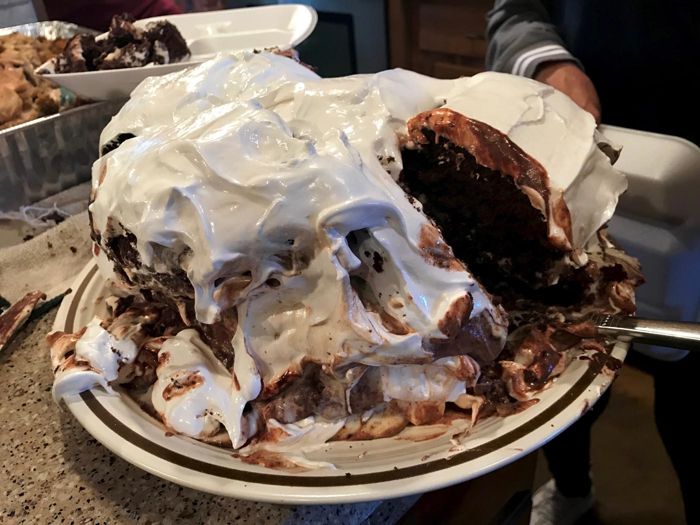 November 24, 2016 - Thursday - Happy Thanksgiving! My sister loves to try new recipes but they don't love her. This "is" a four layer chocolate cake. As soon as she started frosting it, it began to fall apart and slide in different directions. When I walked in there were 3 people, 6 hands, trying to keep the parts from falling to the floor. Bless her heart.