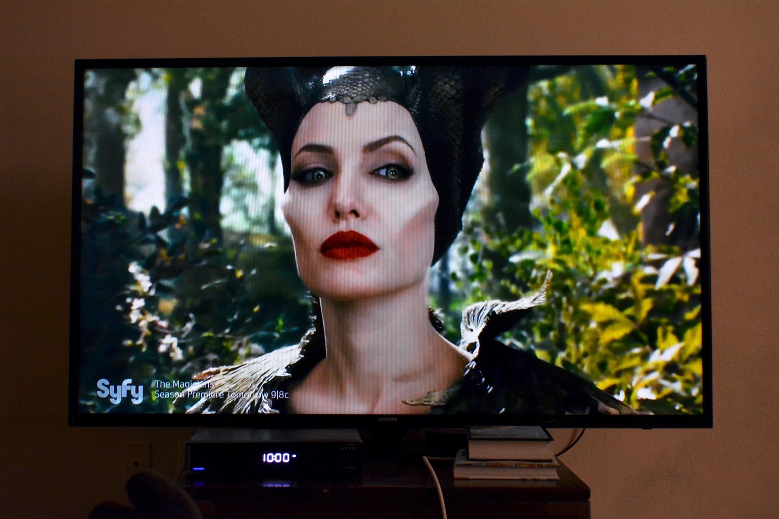 January 24, 2017 - Tuesday - Maleficent was on tonight. I think this is a very creative retelling of the story from a different perspective. Pancake was standing up against the table just before I took this. Apparently she lost interest. She didn't seem too impressed with any of it too much.