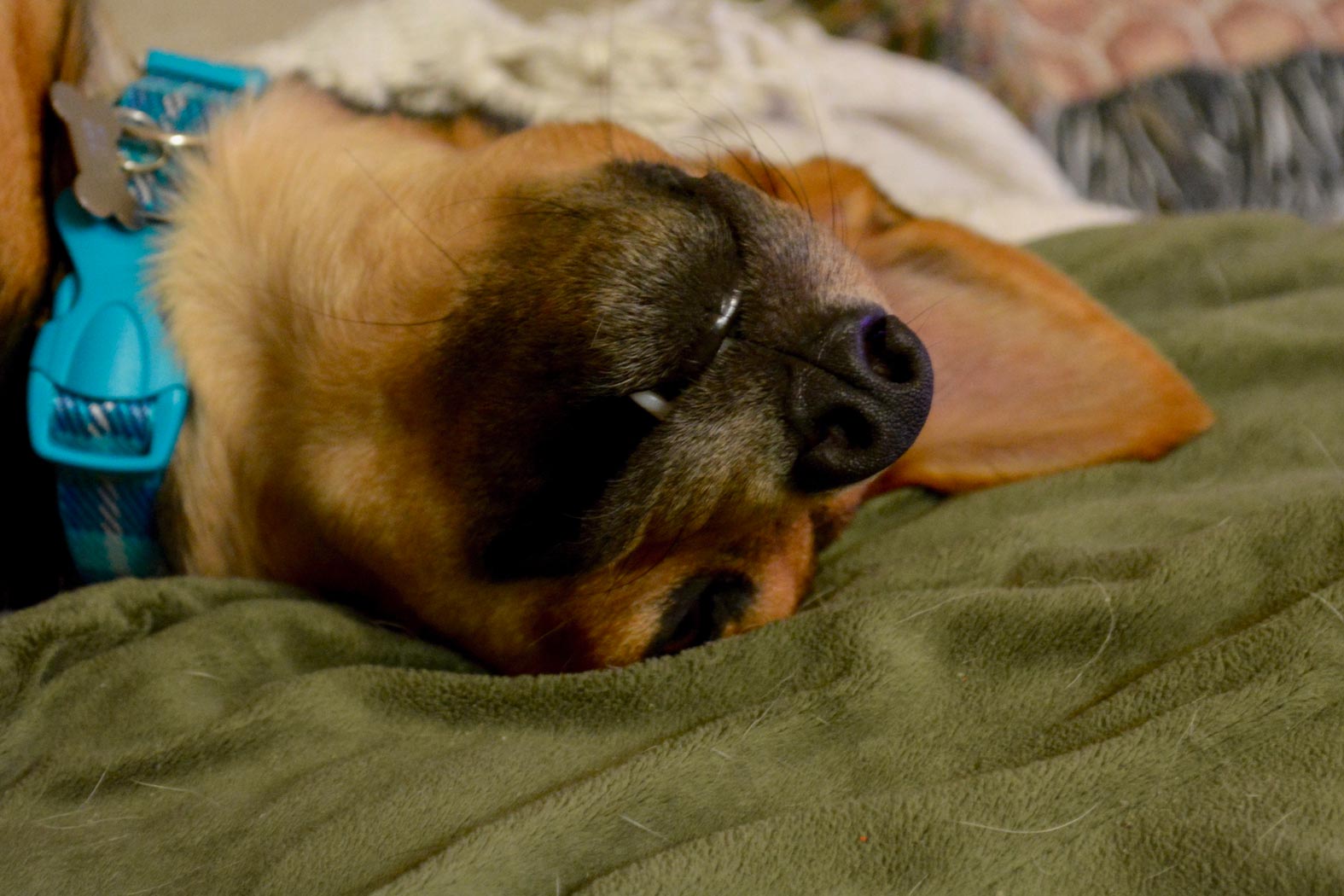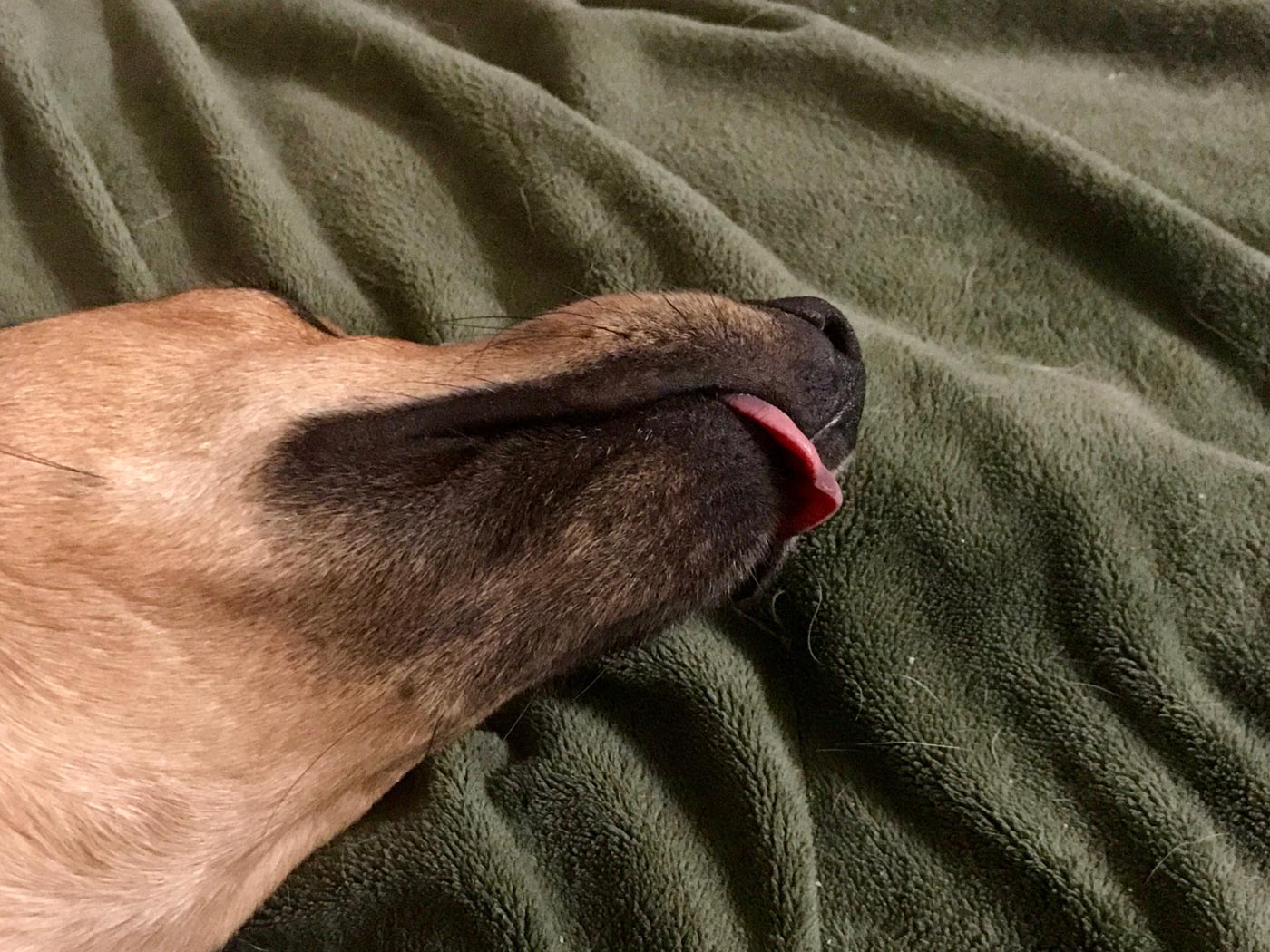 July 29, 2017 - Saturday - After a long day of chasing and harassing Biscuit, Mia was all tuckered out. She's only about 9 months old so she's still such a playful puppy. But when she gets tired she likes to sleep on her back with her tongue poking out a little bit.