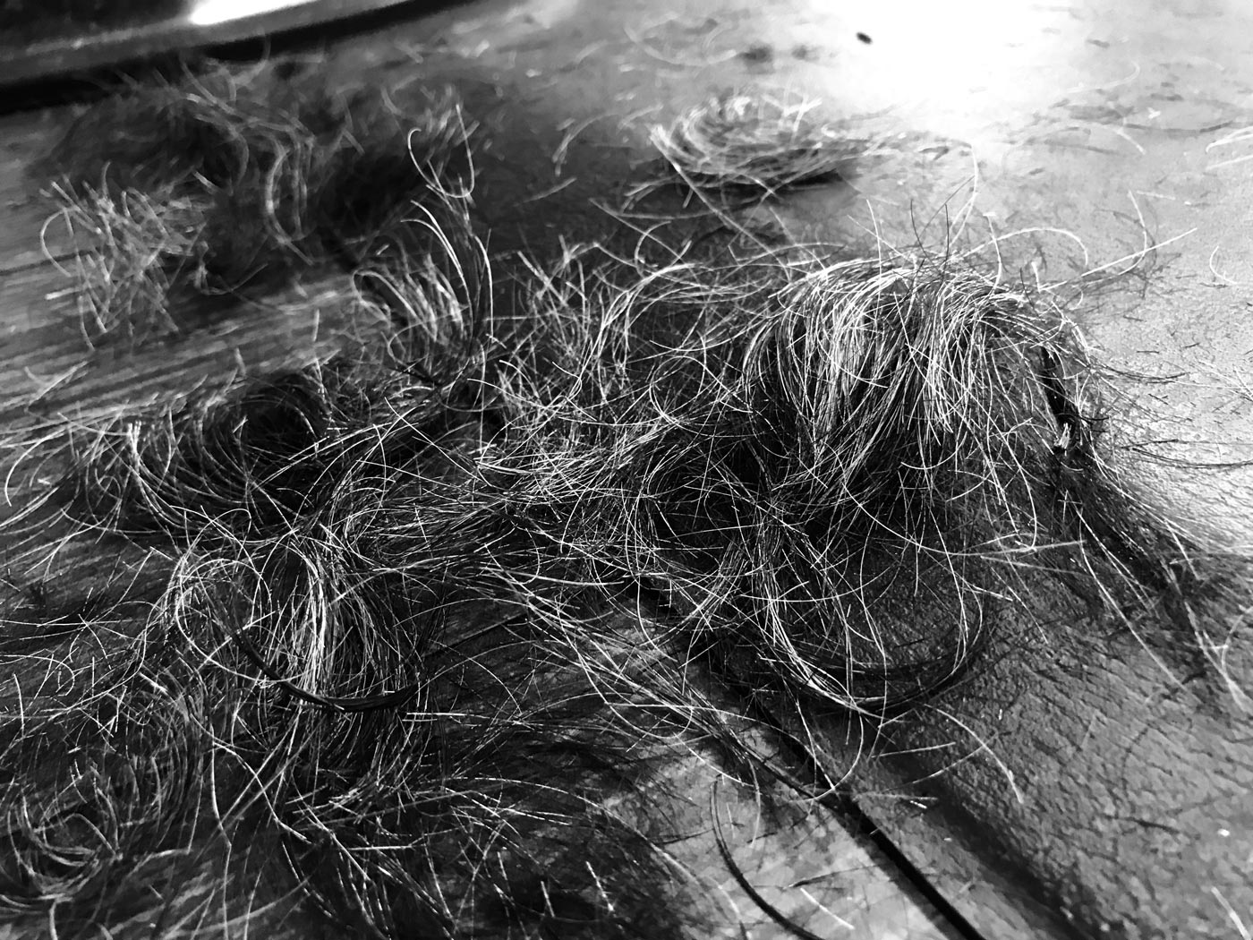 November 28, 2017 - Tuesday - Day 5, Seven days. Seven black and white photos of your life. No humans. Got challenged by a friend so I decided to incorporate this into my photo of the day. Went to get my hair cut. Been needing it for a while and there was so much black and white there already I didn't have to do much.