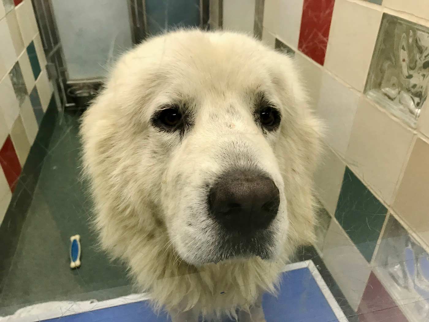 April 5, 2018 - Thursday - I was out running some errands, one of them being dropping off some stuff for the pups at the shelter. While I was there I decided to go walking around to say Hello to the dogs. Turning the corner I saw this guy. He walked up to the window to say hi too. If you want a cool Great Pyrenees go to Plano Animal Services. Adopt don't buy!