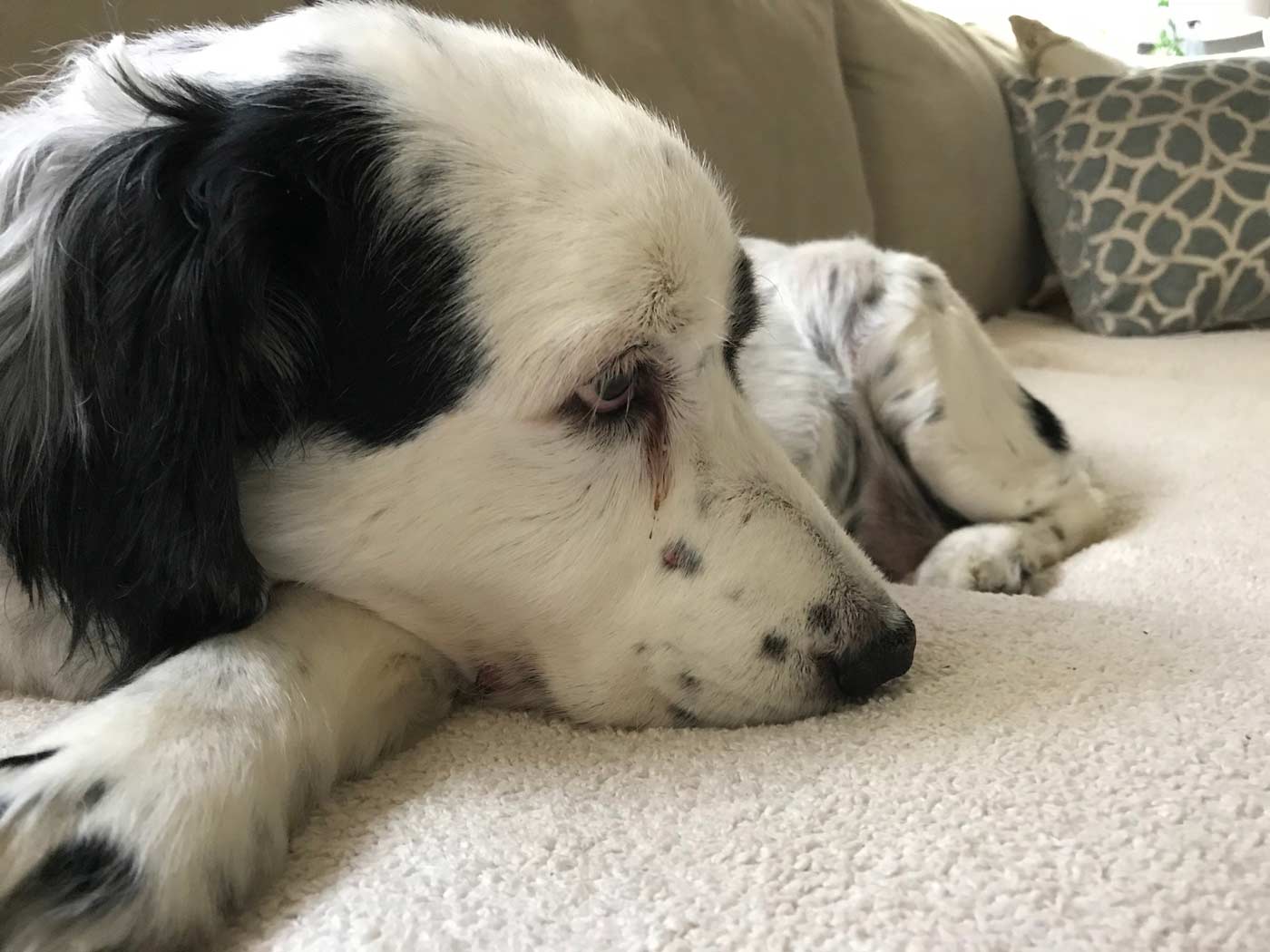 April 22, 2018 - Sunday - Different dog, different couch, different city, same situation. I had been improving the last few days, but today was a couple steps backward. (Pun intended) Regardless of how I feel tomorrow I have to go into the office. Have a lot of work to do tomorrow.