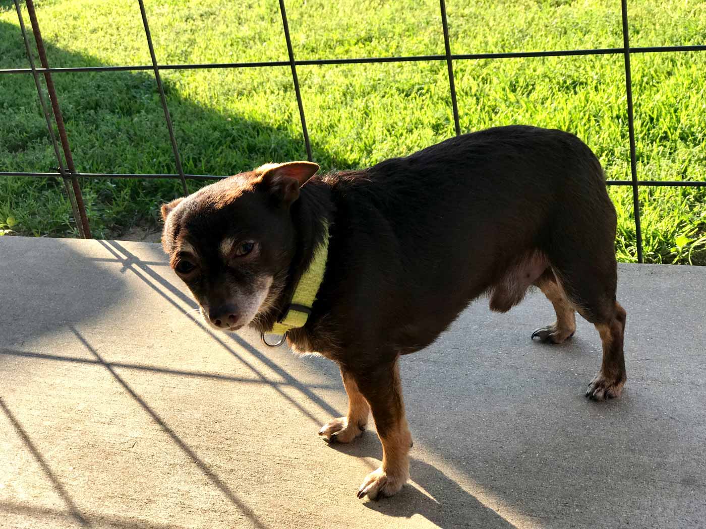April 29, 2018 - Sunday - This is my brother's other dog, Dozer. He looks kinda high all the time. He doesn't hold still very much to take a photo so its even funnier that this is the one photo I got of him that wasn't blurry. I call him Killer too since he barks even more than Rusty. That aside he's become a lot more friendly since I moved here.