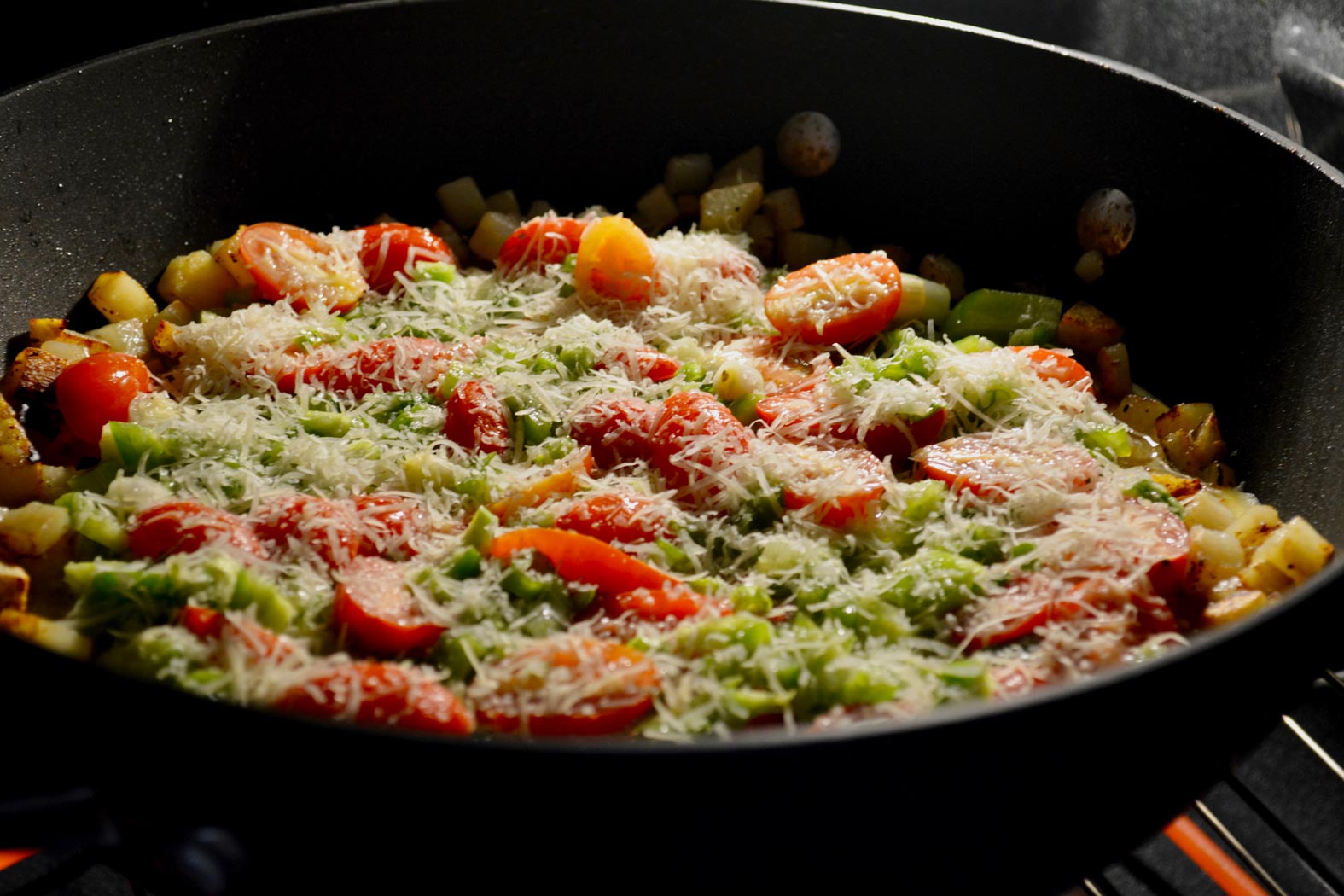 January 5, 2018 - Friday - Made a frittata for dinner tonight. Since I got my new knife for Christmas I've been looking for anything to chop, dice or slice. This was just after I put it in the over to bake. The green bell pepper was a little large this time. Wish I wasn't out of OJ.