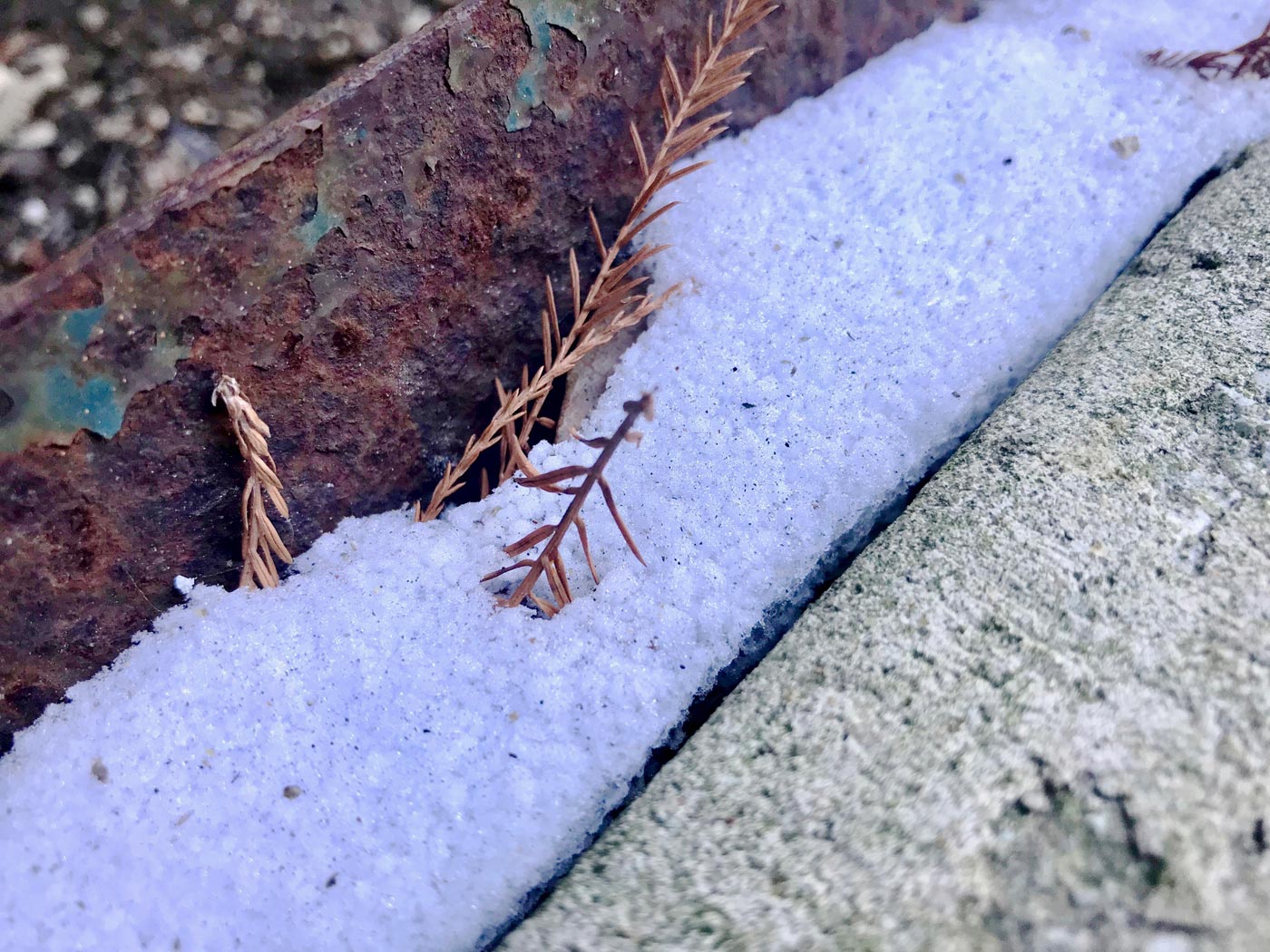 January 16, 2018 - Tuesday - Last night when I took Grace out it was 18° and misting. I thought we were supposed to have lots of ice and sleet. This morning when I was taking Grace out this was about all I could find of any ice or snow. The roads looked fine but it was still 19°.