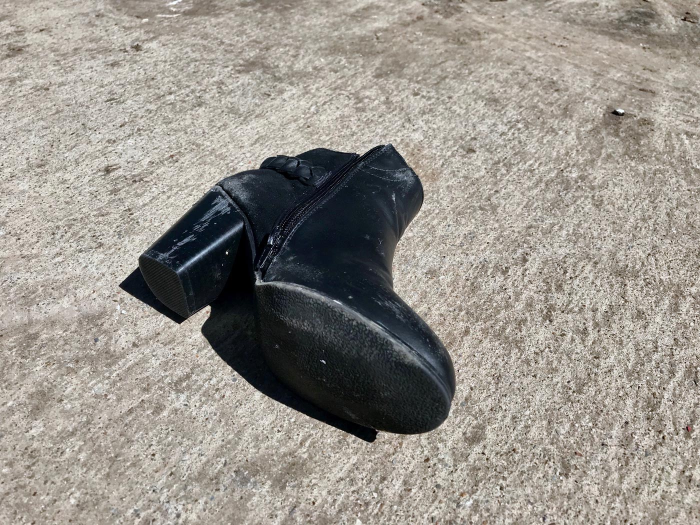 March 6, 2018 - Tuesday - Someone lost a shoe. This was in the parking lot and from the location I guess it was under a car. I don't know why lost shoes are so funny to me.