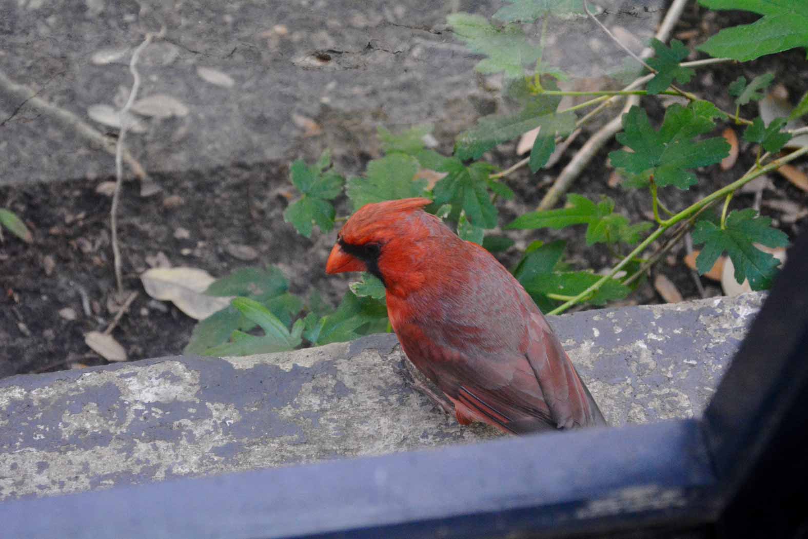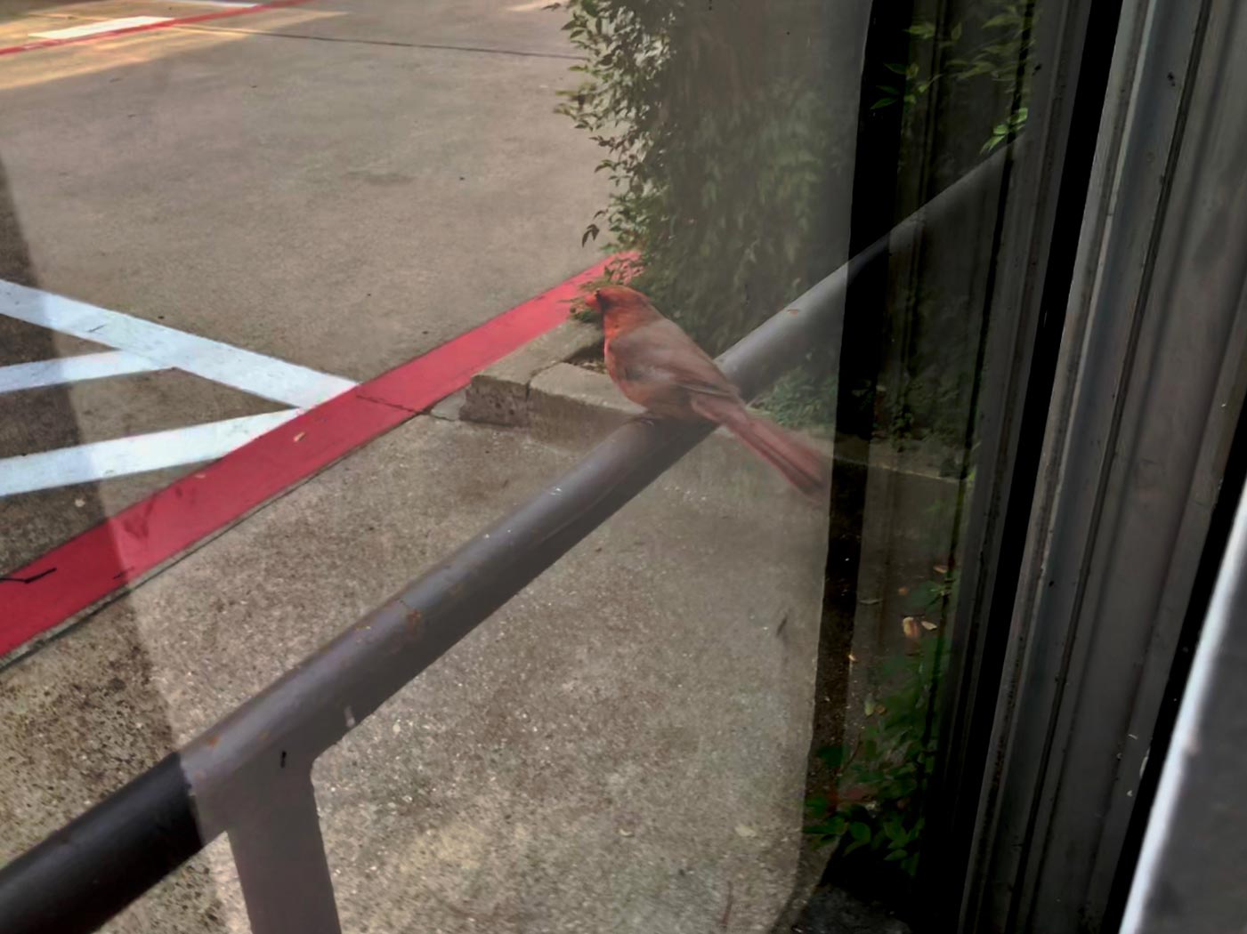 May 7, 2018 - Monday - Parking my car this morning at work a cardinal, maybe not this same one, came and landed on my side view mirror. It stayed long enough for me to get a few photos with my phone. A little later while sitting at my desk I heard knocking on the glass behind me. I've heard this is supposed to signal a visitor who's passed. Mother's Day is this weekend.