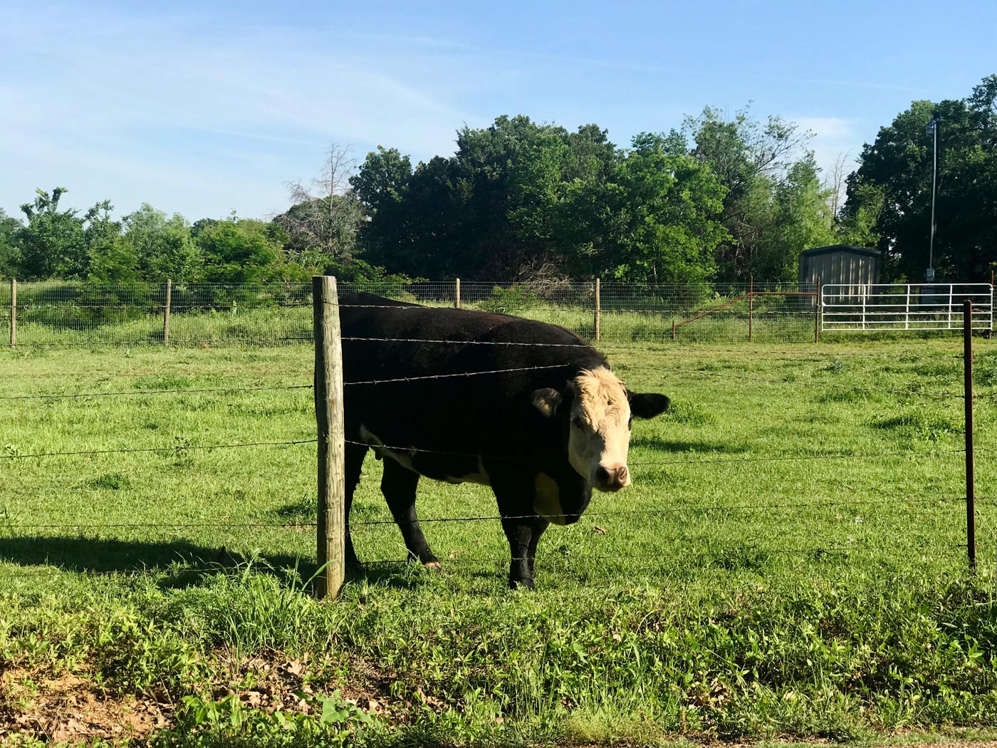 May 8, 2018 - Tuesday - Driving home I stopped to get a photo of this cow stretching through the fence to get to the grass on the other side. It looks just as green on both sides but what do I know. It stopped eating when I started taking it's photo. I guess I'd stop too if someone started photographing me while I was eating.