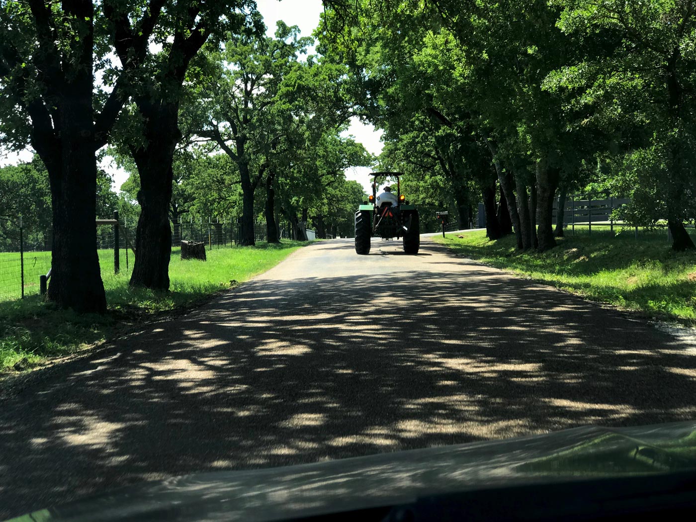 May 12, 2018 - Saturday - I got up this morning to run some errands. On my way back home I came upon this guy. Fortunately we weren't going the same direction for long. I found out later he delivers bales of hay in the neighborhood with this every so often and this is part of his delivery route.
