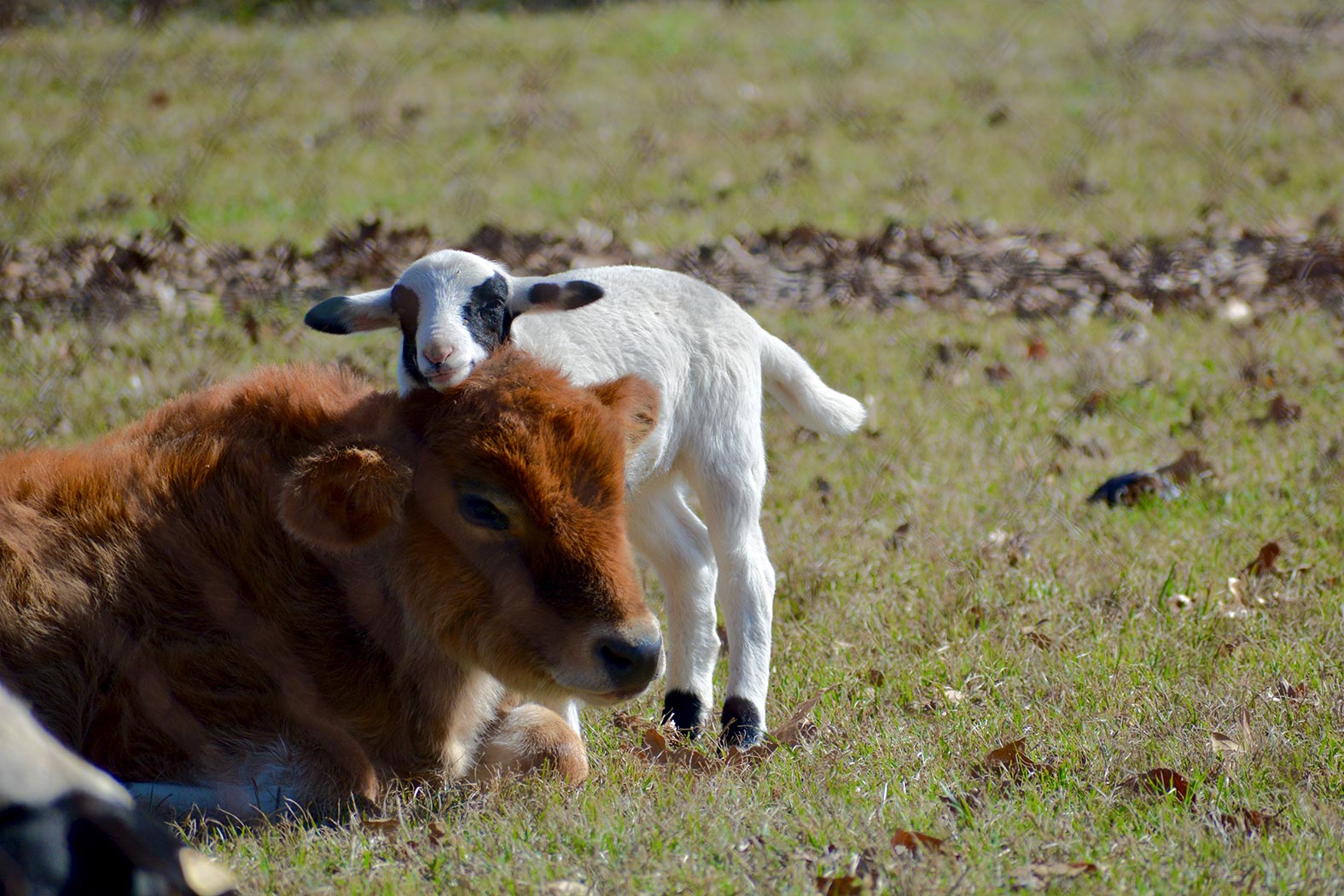 December 1, 2019 - Sunday - I spent the night out at dad's yesterday after our late Thanksgiving. My brother has a bunch of new babies. Lots of calves and a few goats. Apparently these two are becoming good friends.