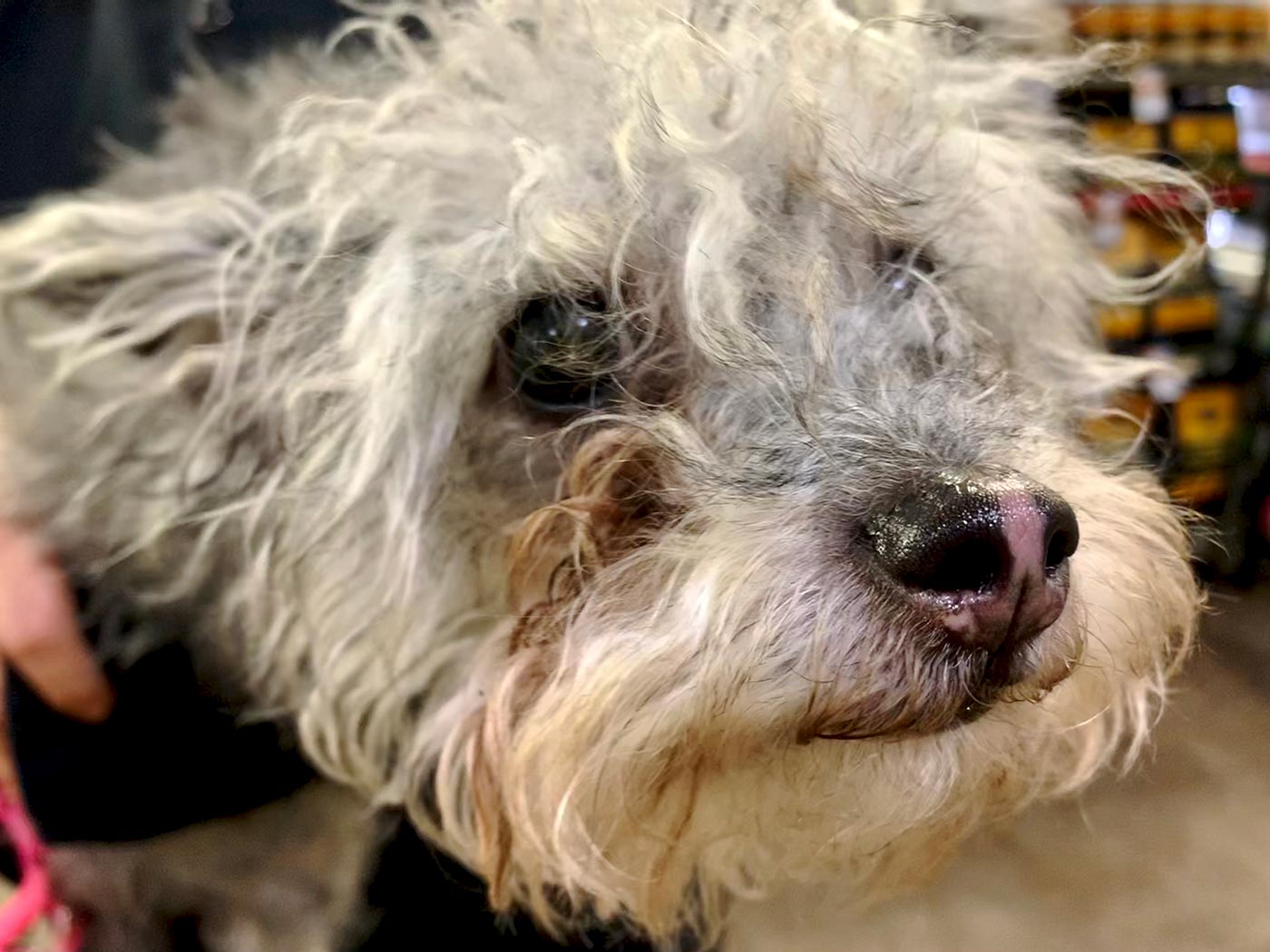 December 4, 2019 - Wednesday - Biscuit and Pancake are out of food and my Chewy.com delivery doesn't come until tomorrow. I stopped by Pet Supplies Plus on the way home. I was standing in line and this little guy was in line behind me. I bet he doesn't like to be brushed. Looked at his racing stripe.