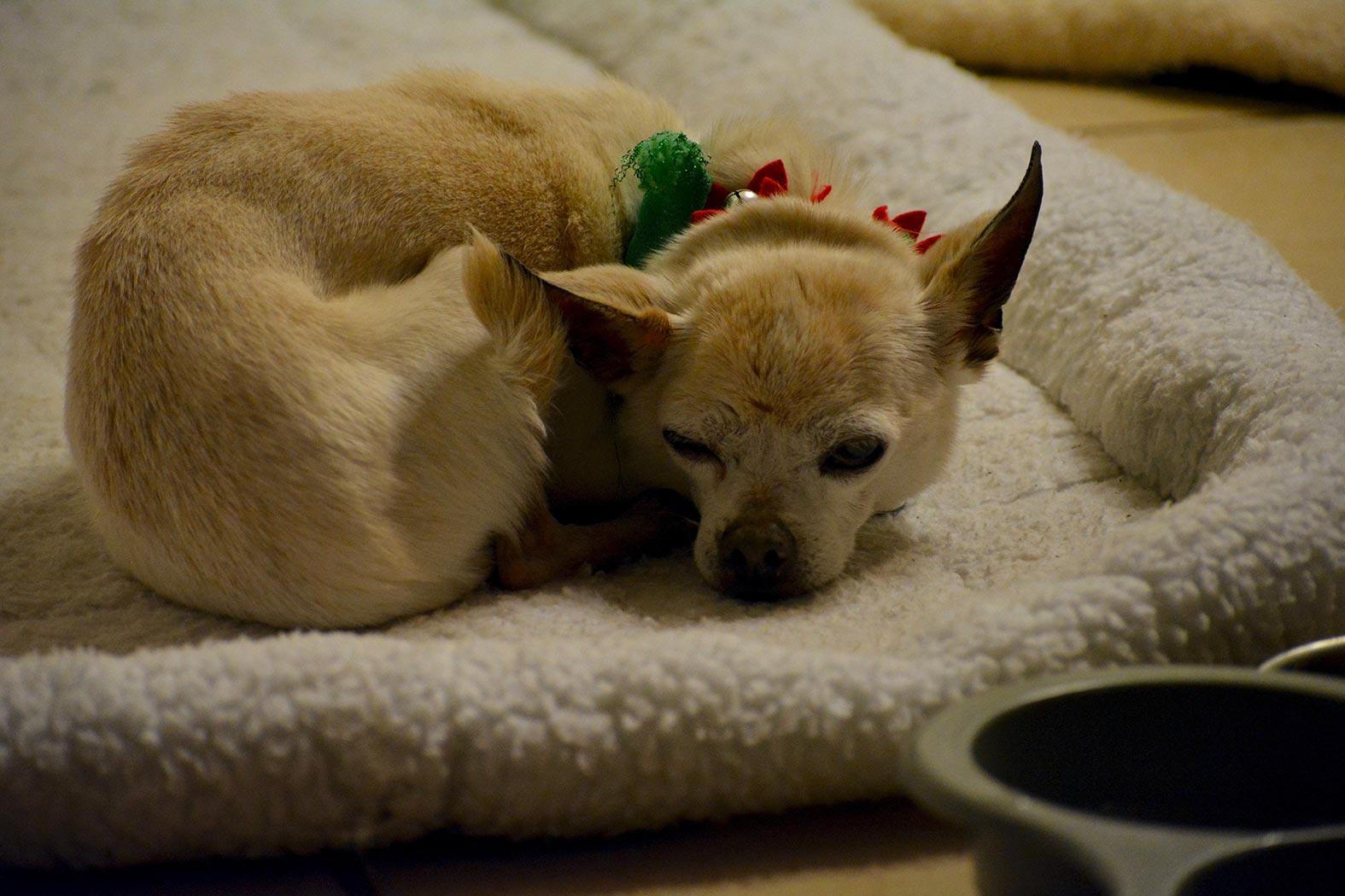 January 1, 2019 - Tuesday - Not ringing in the New Year very well today. I have no idea what I did but my lower back is killing me. Thankfully not much else is bothering me so there's that. This is one of the pups I'm sitting, Pancho. Poor old man is blind and deaf, but he still does a pretty good job finding his way out to do his business.