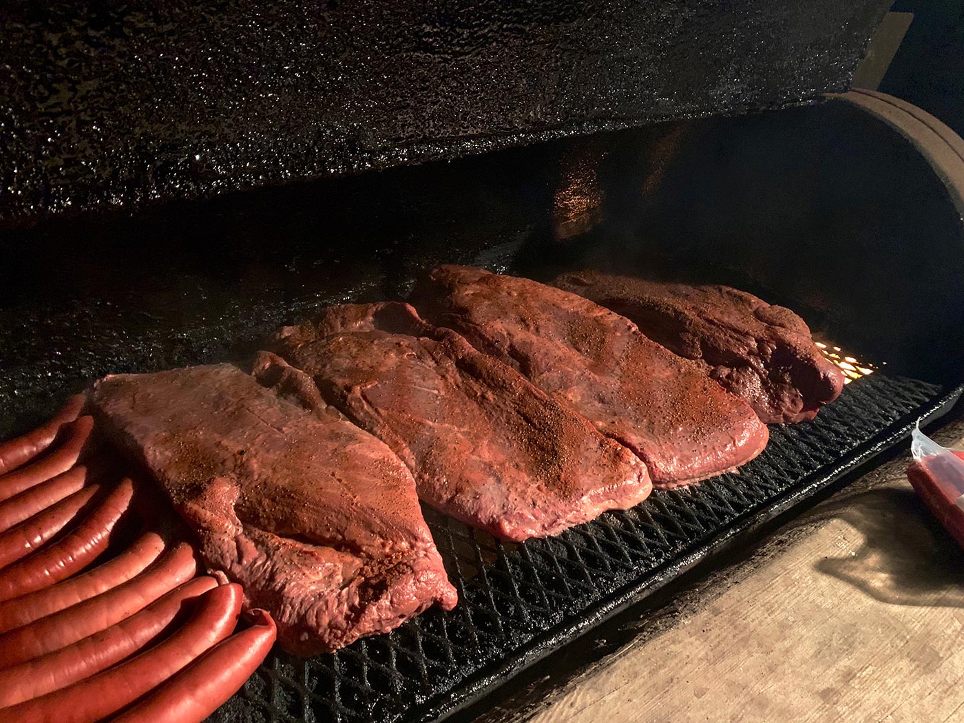 March 1, 2019 - Friday - Went out to the country to spend the weekend with Dad. We went over to my brother's for a menudo dinner. Mmmmmm. I went out later to help... well more to watch my brother start a fire in his smoker and throw some briskets and sausage on. He's feeding some very lucky co-worker with all this.