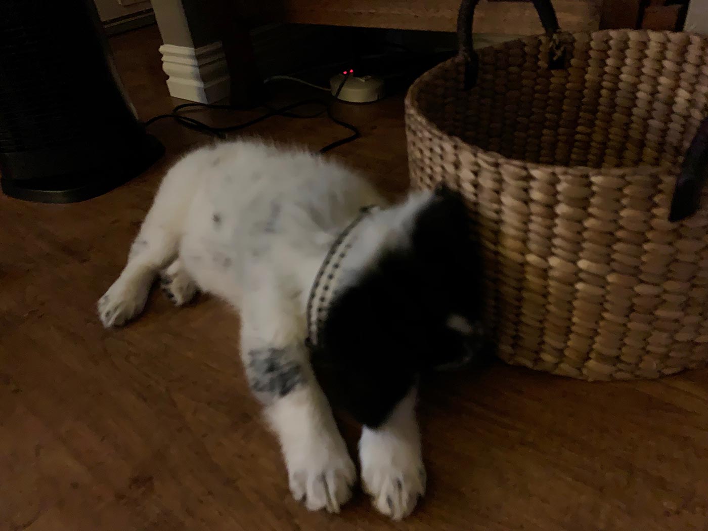 March 26, 2019 - Tuesday - I went to see my friend who recently got a new puppy. This is Phoebe. It's not a good photo because it was kinda dark and she doesn't sit still very much, but it does accurately show how fluffy and soft she it. She has a big, round, puppy belly, still smells like a puppy, has sharp, pointy teeth and has puppy breath. Kinda wanting a puppy now.