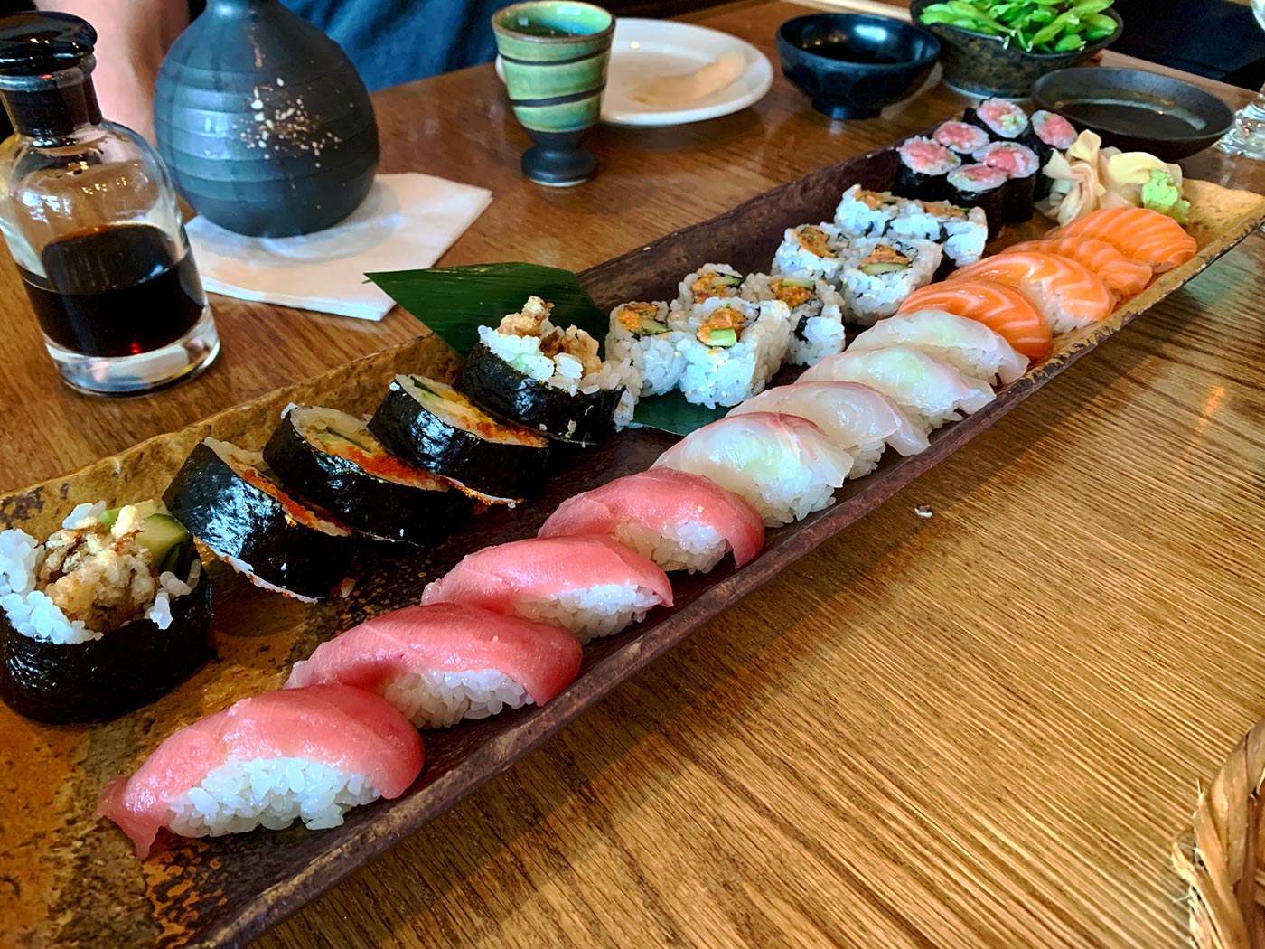 February 7, 2020 - Friday - After my positive experience with seafood in Mexico, a group of us from work decided to try another recommendation from our coworker. She has a 2 for 2 record in picking lunch locations with me. She also did all the ordering for the table. There was something before this and another dish beside this, but of it all I liked the Blue Fin Tuna and the Salmon best.