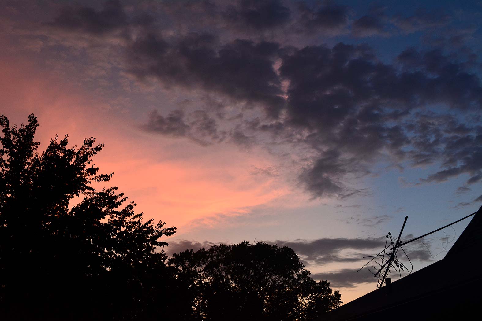 July 5, 2020 - Sunday - Poor Zak has been pacing most of the day with the thunder off and on. I took the dogs out before dinner and Zak didn't want to go out into the yard. He paced around the back porch most of the time he was outside. I realized I hadn't taken a photo today and thought the glow outside was nice.