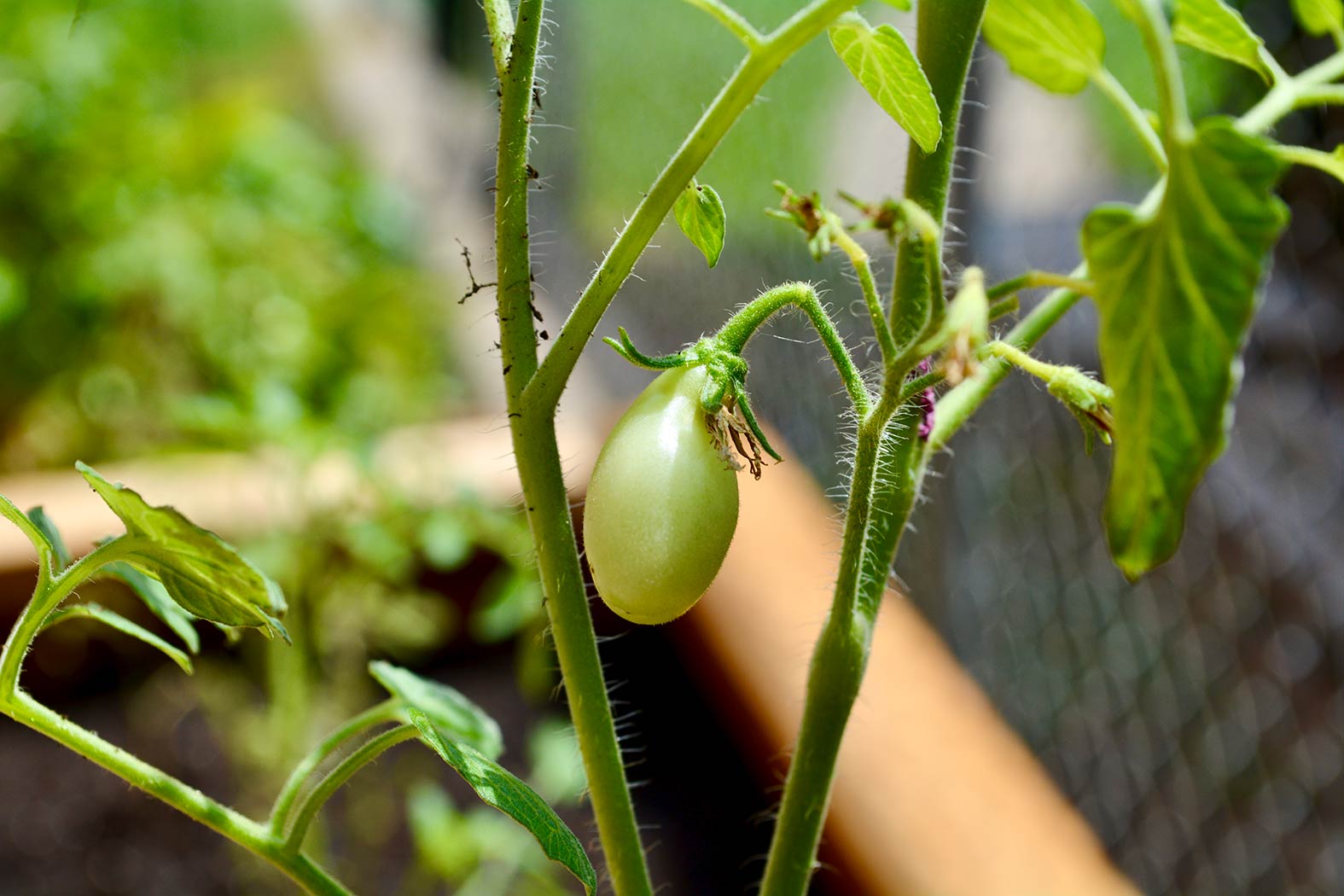 July 10, 2020 - Friday - I built my raised bed two weeks ago. I went to get dirt a day or two later. My trunk was full of bags of rocks, top soil, manure and potting soil. When I got home and put in the rocks and top soil I came to the sad realization that I had nowhere near enough dirt. I finally went out to get more dirt and replanted my grape tomatoes. Here's the first one.