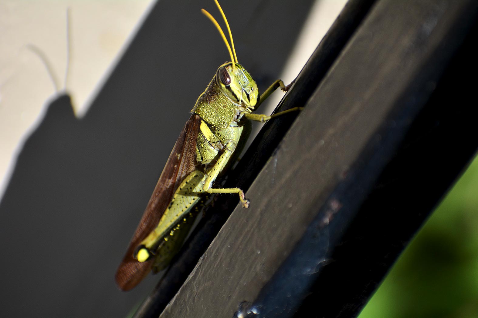 July 24, 2020 - Friday - I went out with Zak this morning. I went to the gate to go dispose of the poop and saw this guy hanging out there. He was about 3" long. He didn't move hardly at all while I went in and out so I went to get my camera. When I got back he had moved to the sunny side of the gate. Thanks.