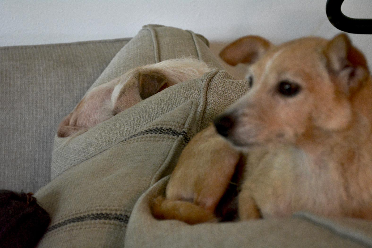 May 14, 2020 - Thursday - They finally decided that one spot isn't big enough for the both of them and have taken to lying on these two back cushions of the couch. I guess the seat cushions just aren't comfy enough.