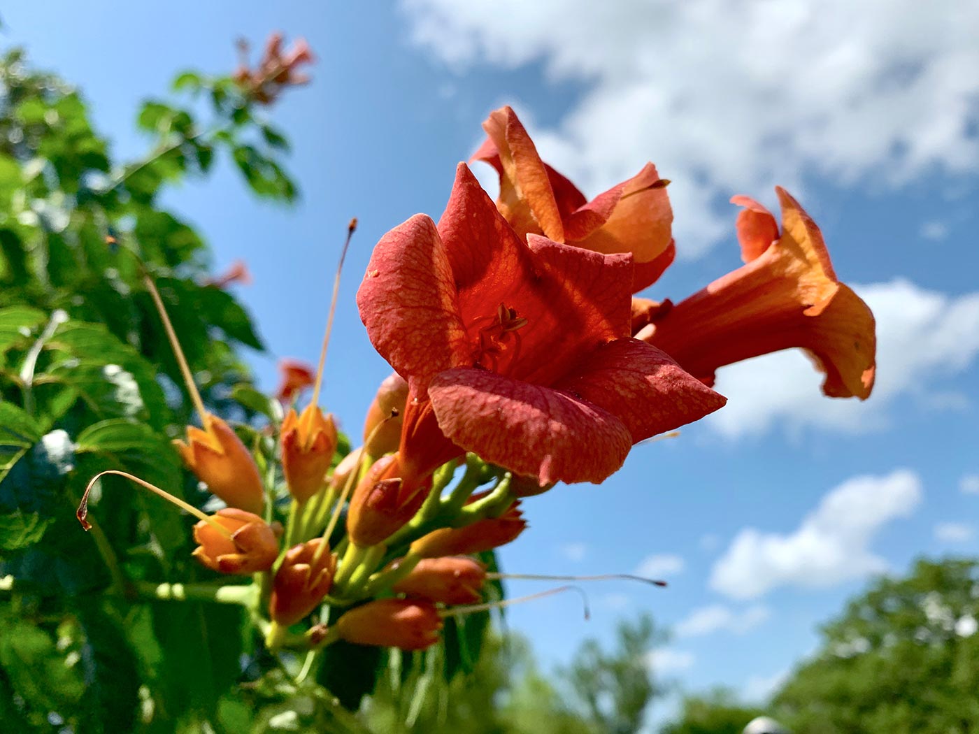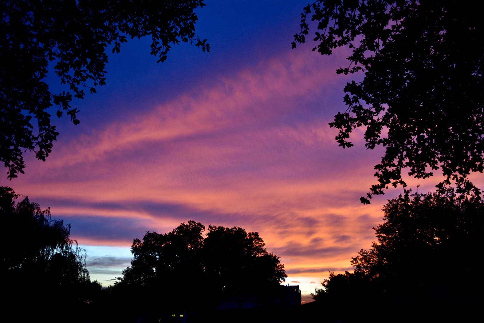 May 31, 2020 - Sunday - I have a small space between the building down the street and trees to see the sun setting. I went out to my car to get something and saw this. It's been such nice weather lately even if it's a little warm.
