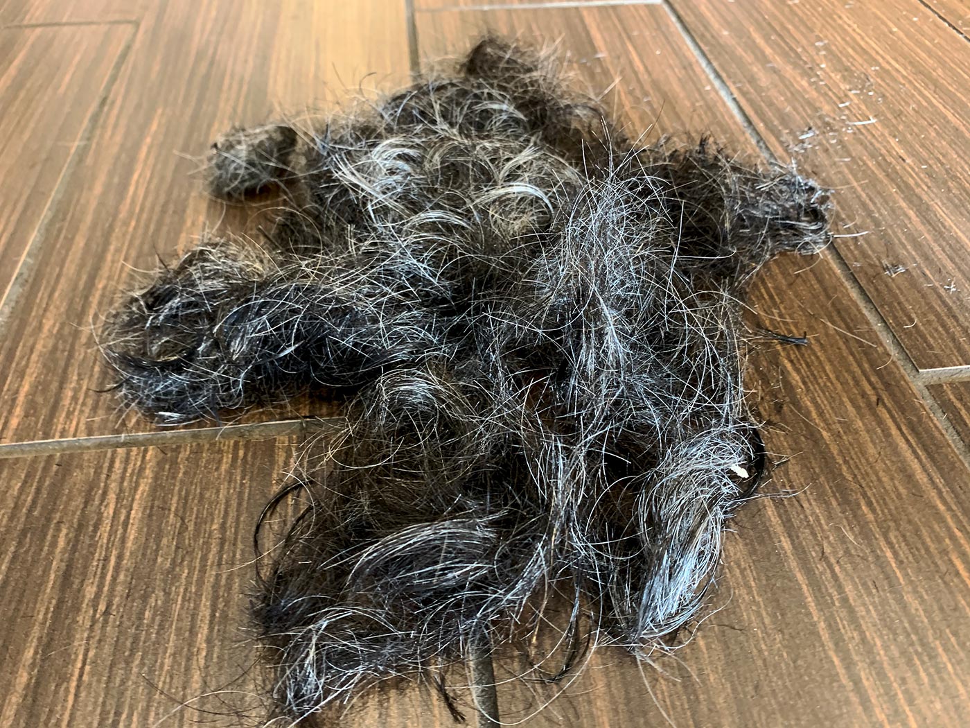May 26, 2020 - Tuesday - I finally got my hair cut!!! I hadn't had a hair cut since February 15th. I usually go about every 2 months. After 3 and a half months I was really getting shaggy. I can't remember that last time my hair was this long. The place was empty except the two of us. This pile is all mine and it looks like a small teddy bear. A shaggy, mostly gray teddy bear.