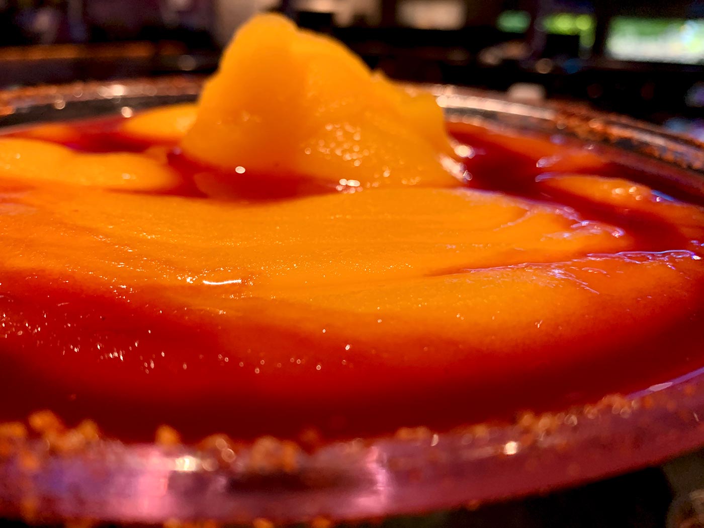 May 29, 2020 - Friday - On a spur of the moment I went to see a friend and have dinner. We've shared one of these before and it was delicious. I think it's a mango margarita with a sangria swirl with some kind of chili powder blend on the rim. It's been nice eating out a little again.