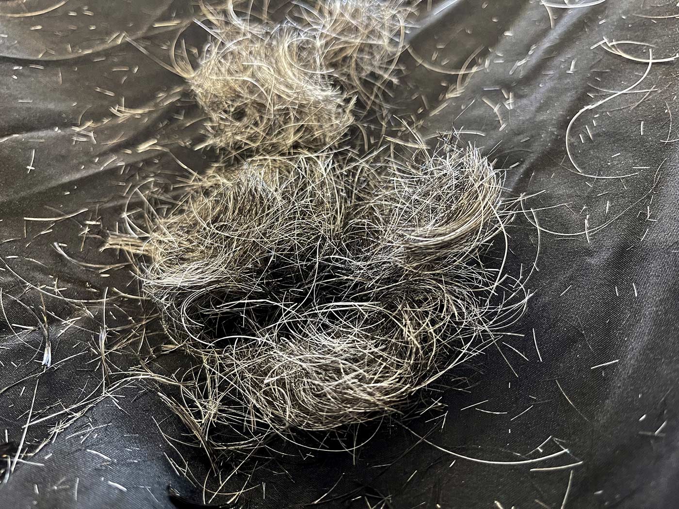 April 12, 2022 - Tuesday - Today I went to get a haircut. It seemed like I was okay one day and then the next day my hair crazy shaggy. It's amazing how much gray there seems to be here but when it's still on my head it doesn't look nearly this gray. Maybe it's just the proximity of my white beard.