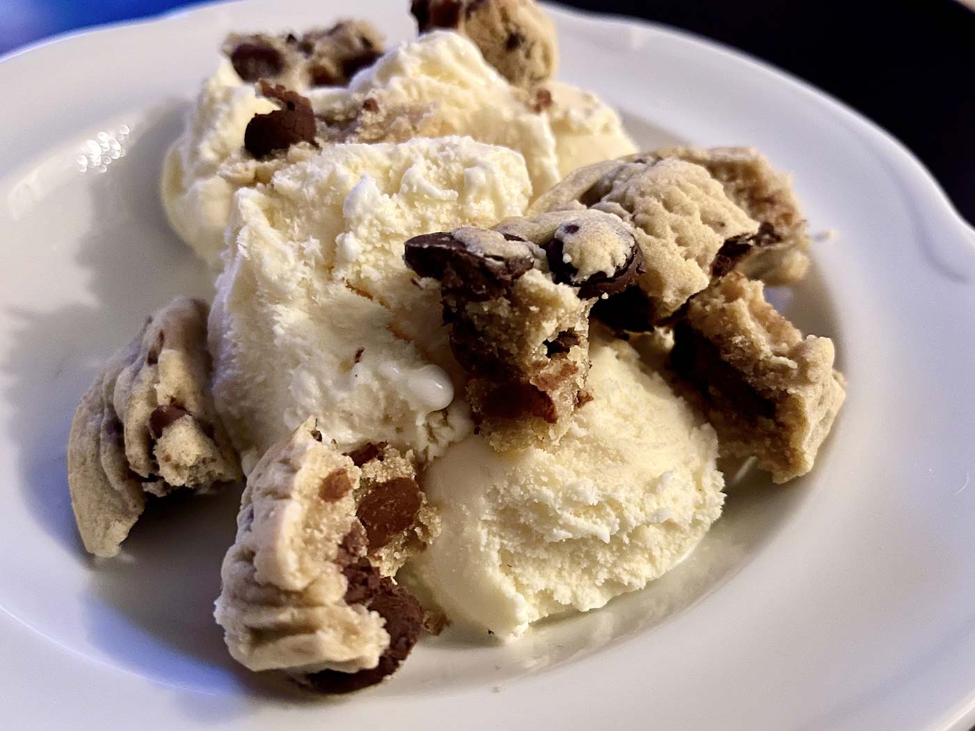May 14, 2022 - Saturday - Round 2! This time I warmed up the Ultimate Chocolate Chip cookie from Sparkle All Over and then broke it into pieces over a little bit of vanilla from Blue Bell. I not sure which is better tonights version or yesterday's. They're both so good and I'm not even that big on ice cream.