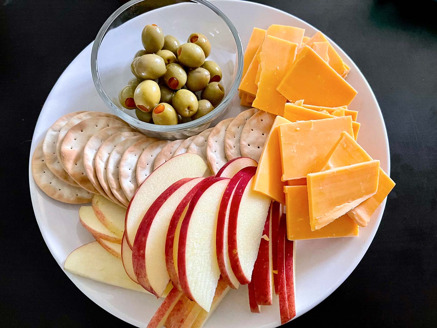 May 22, 2022 - Sunday - I eat this pretty often too. It's nothing pretty but it's simple and I really love cheddar and honeycrisp apples together. I'm trying to get through this box of crackers though. They're water crisp crackers that barely taste like anything other than cardboard. The dogs seem to like them. Of course it may be the apples and cheese with it.