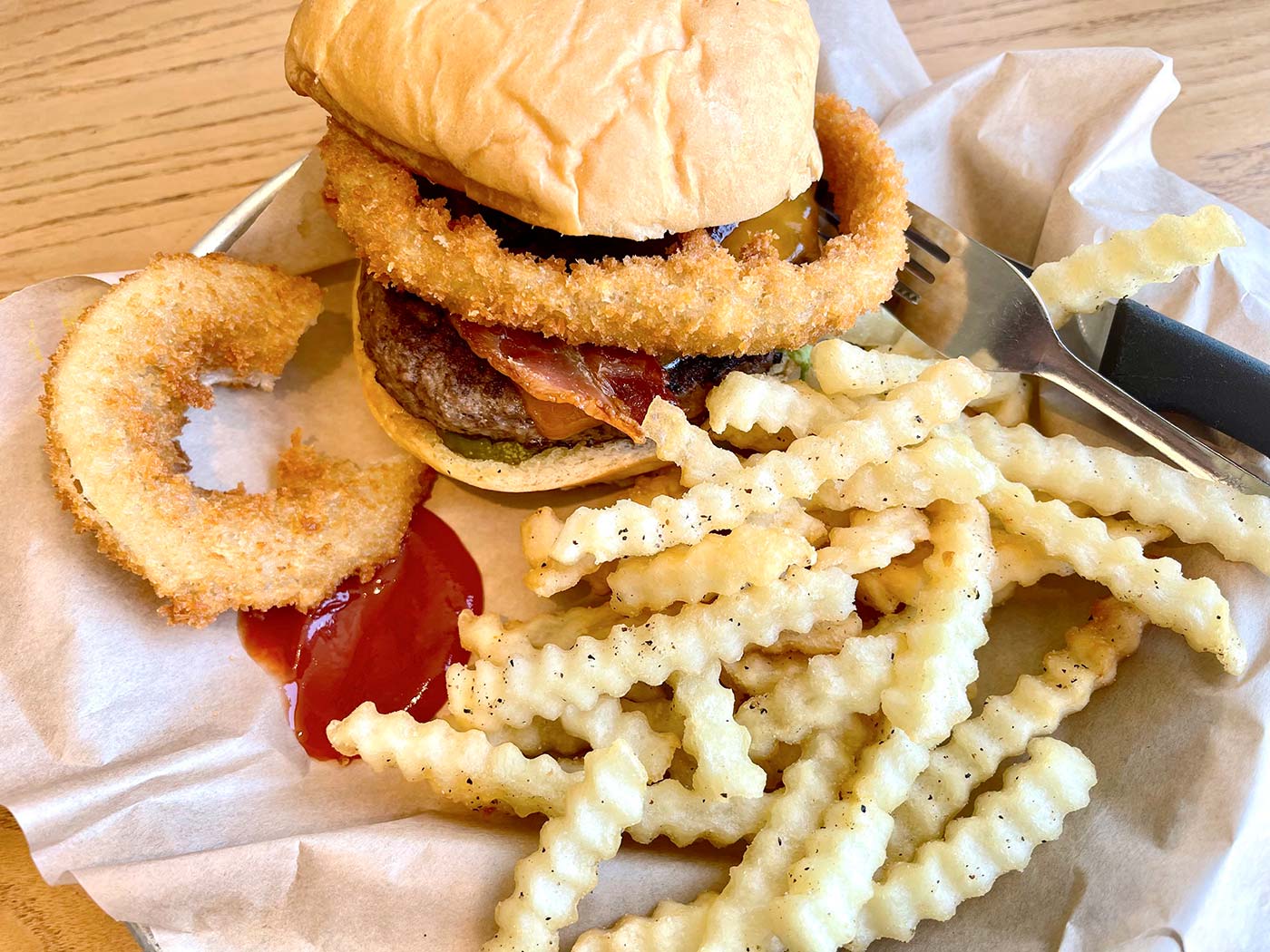 May 19, 2022 - Thursday - I went to meet a friend I've not seen it a while. We went out to a burger place for dinner. Usually I'm not a big fan of sweet potato anything, but these fries were really good. Not as good as the frozen yogurt we had after but still pretty good.