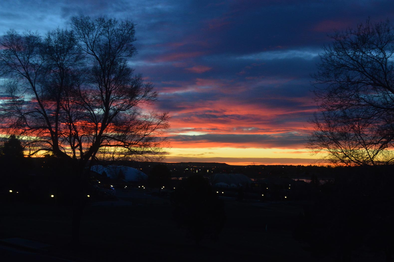 I guess this was Colorado's parting gift to me. I woke up and rolled over and saw the sun rising out the back patio door. It was beautiful enough for me to get out of bed and take a picture. The bed in this place was amazing. It's so much easier to get up for a sunrise when it comes an hour later than usual.