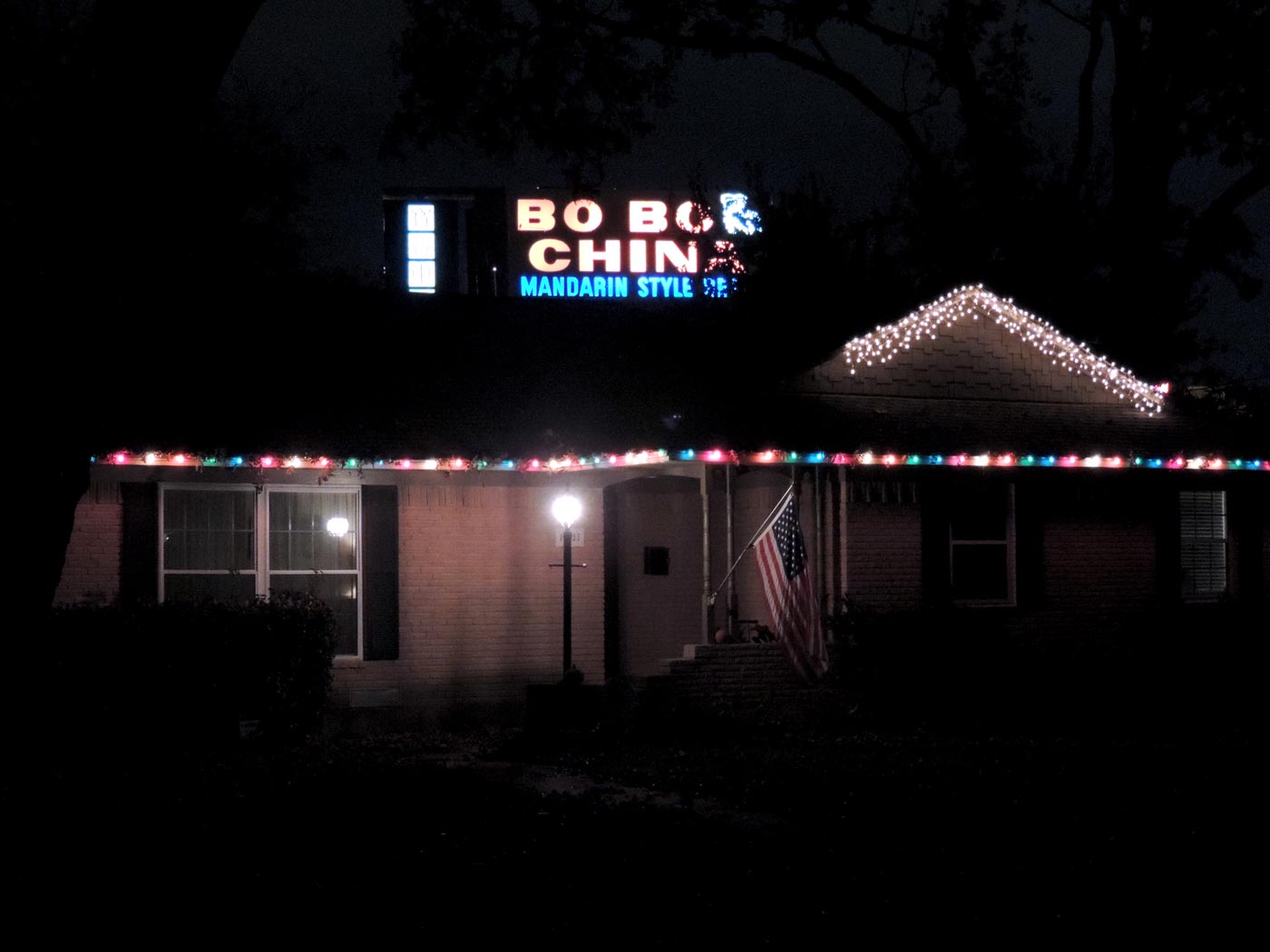 My neighbor has put up their Christmas lights and the Bo Bo China sign is a little over the top and not really Christmas themed unless you make the stretch to the end of A Christmas Story. Maybe I should give them a leg lamp for their front window.